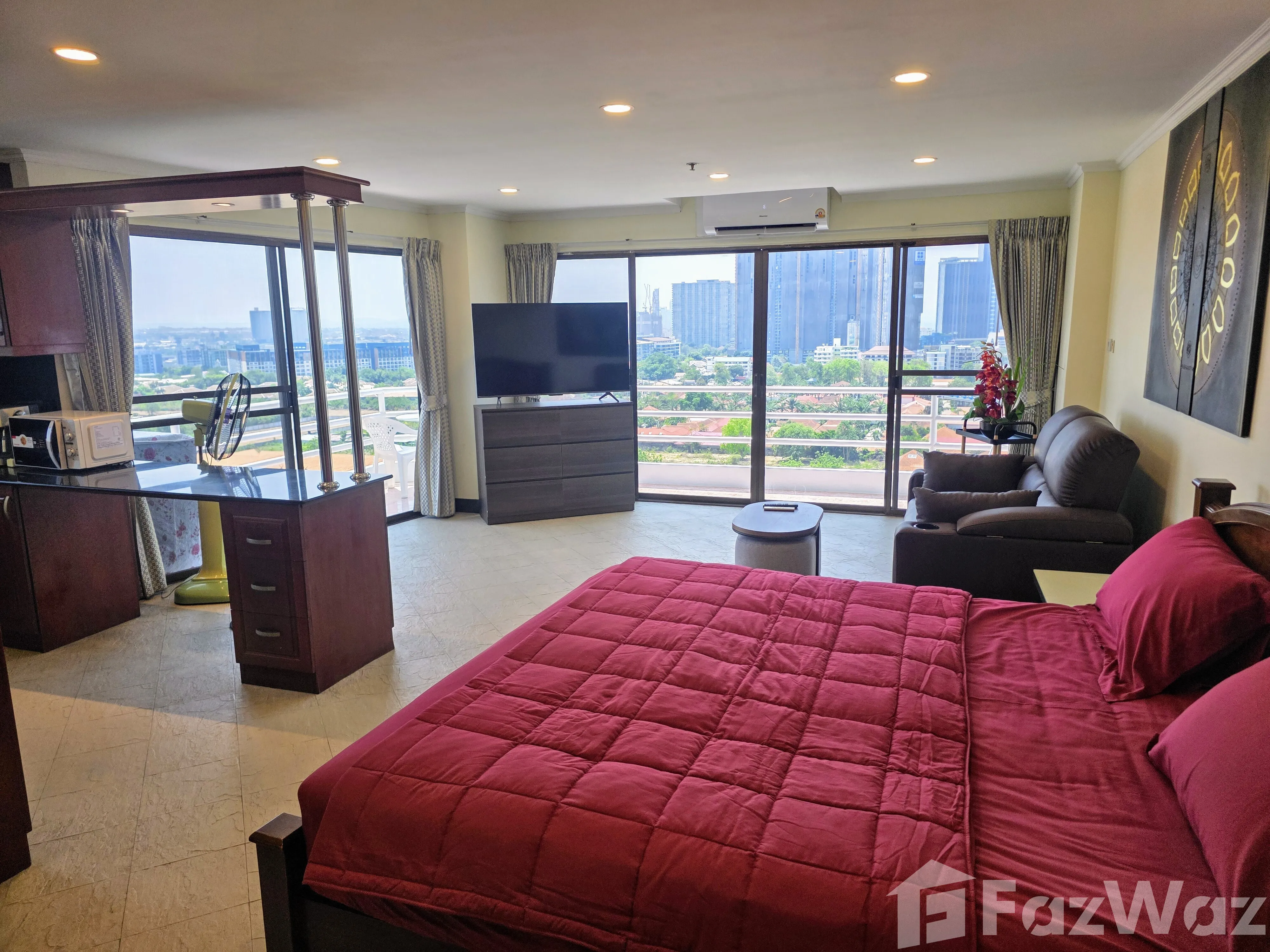 เป็นคอนโดที่มีสิ่งอำนวยความสะดวกครบ ทั้งร้านอาหาร บาร์ สระว่ายน้ำ ฟิตเนส ทำให้สะดวกมาก ๆ เราเช่าห้องที่นี่อยู่มาหลายปีแล้ว ห้องที่เราเช่าเป็นห้องสตูดิโอ ระเบียงเห็นวิวหาดจอมเทียนนิดหน่อย เพราะมีตึกสูงอื่นมาบัง จึงทำให้เห็นไม่ชัด แต่จะเห็นเป็นวิวเมืองแทน ส่วนภายในห้อง ตอนที่เราย้ายเข้ามาอยู่ ก็เรียบร้อยดี เฟอร์นิเจอร์ต่าง ๆ ภายในตกแต่งพร้อมอยู่ ทุกอย่างภายในห้องถูกผ่านการใช้งานมาบ้าง แต่ทุกอย่างถูกบำรุงรักษาอย่างดี จนปัจจุบันนี้ของภายในห้องก็ไม่เคยพังเสียหาย ถือได้ว่าแข็งแรงอยู่พอสมควร ที่นี่มีสระว่ายน้ำส่วนกลางขนาดใหญ่ ไม่ต้องกลัวว่า ถ้าคนเยอะแล้วจะไม่มีที่ว่ายน้ำ เพราะพื้นที่เหลือเฟือมาก ว่ายน้ำกันได้อย่างสบาย ๆ ได้เลยค่ะ บริเวณใกล้ ๆ คอนโดก็มีร้านอาหารเยอะมาก มีทั้งอาหารไทยและนานาชาติ ร้านสะดวกซื้อทั่วไป ไม่มีรถส่วนตัว ก็สามารถใช้ชีวิตได้ง่าย ๆ เพราะถนนสายนี้มีรถประจำทางผ่านเป็นประจำ จะเข้าเมืองหรือไปหาดพัทยาก็ง่ายนิดเดียวค่ะ โดยรวมแล้ว ส่วนตัวโอเคกับคอนโดแห่งนี้ เพราะสะดวกต่อการใช้ชีวิตดี ใกล้ที่ทำงาน จะใช้รถส่วนตัว หรือวันไหนเบื่อ ๆ อยากนั่งรถประจำทางก็สามารถทำได้ สามารถเปลี่ยนแปลง และหาประสบการณ์ชีวิตได้เรื่อย ๆ เลยค่ะ