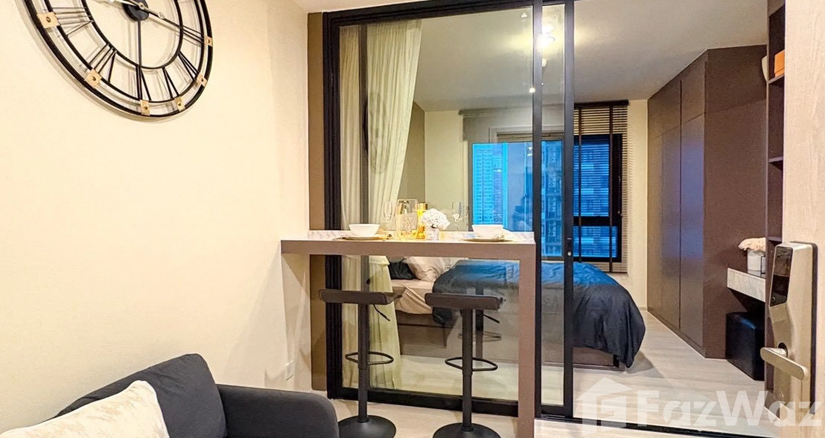 คอนโดระดับไฮคลาส หรูหรา ให้ความเป็นส่วนตัวสูง เหมาะกับชีวิตคนเมืองยุคใหม่อย่างเรา ฉันชอบและถูกใจคอนโดที่นี่ตั้งแต่มีงานเปิดตัวและมีโอกาสมาดูห้องตัวอย่าง 2-3 ครั้งจึงตัดสินใจซื้อ หลาย ๆ คนแนะนำที่นี่เพราะสิ่งอำนวยความสะดวกมาแบบจัดเต็ม มันวิเศษมาก เป็นตึกใหม่เพิ่งสร้างเสร็จ ฉันได้ห้องชั้นที่ 19 เฟอร์นิเจอร์ตกแต่งดีเยี่ยม จากห้องสามารถมองเห็นเป็นวิวสวนสาธารณะของโครงการ ส่วนห้องฝั่งตรงข้ามจะเห็นวิวเมืองก็สวยงามไม่แพ้กัน ในห้องตกแต่งสีโทนชมพูเทา มันน่ารักและถูกใจฉันมาก มีม่านและกระจกใสกั้นระหว่างห้องนอนและห้องนั่งเล่น ให้ความเป็นส่วนตัวและมีสัดส่วนที่โอเค พื้นที่ครัวมีเครื่องครัวและอุปกรณ์พร้อมใช้ วัสดุที่ใช้ปูพื้นเกรดพรีเมี่ยม ทุกอย่างสมบูรณ์แบบมาก นอกจากนี้พื้นที่ส่วนกลางยังมีพื้นที่รับแขกและจัดสวนหน่อมสวยงาม มีสระว่ายน้ำขนาดใหญ่ ฟิตเนส และพื้นที่ล็อบบี้กว้างขวาง สามารถขอความช่วยเหลือได้ตลอดเวลาเพราะพนักงานบริการดีเยี่ยม