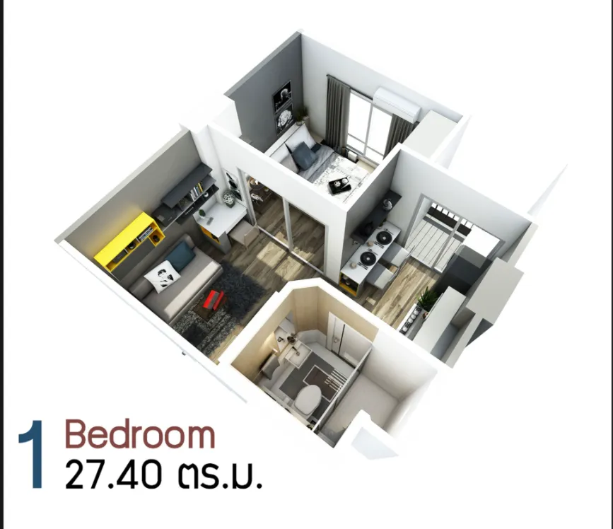 คอนโดให้เช่า 1 ห้องนอน ในโครงการ พลัสคอนโด อยุธยา