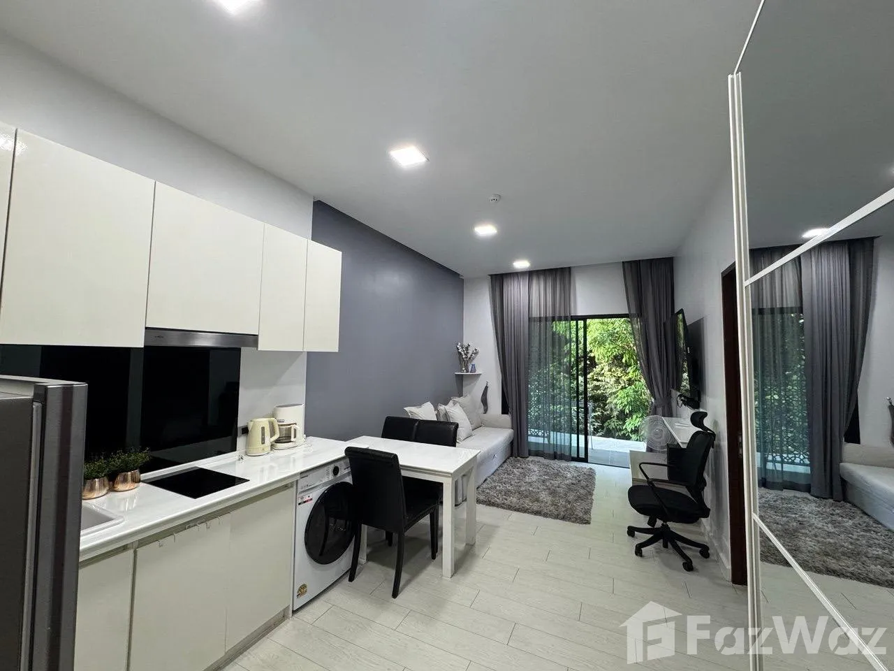 เป็นยูนิตที่ขายพร้อมกับเฟอร์นิเจอร์ครบชุด ที่เรียกได้ว่าเพียงแค่ยกกระเป๋าเสื้อผ้าเข้าไปก็สามารถอยู่อาศัยได้ทันที โดยมักจะมีเฟอร์นิเจอร์ตั้งแต่โซฟา ชั้นวางทีวี ในห้องรับแขก หรืออุปกรณ์เครื่องครัวทั้งหมด รวมไปถึงโต๊ะอาหาร ไล่เรียงไปยังเตียงนอนและตู้เสื้อผ้า ในห้องนอน (รายละเอียดปลีกย่อยอื่นๆ ขึ้นอยู่กับแต่ละยูนิต)