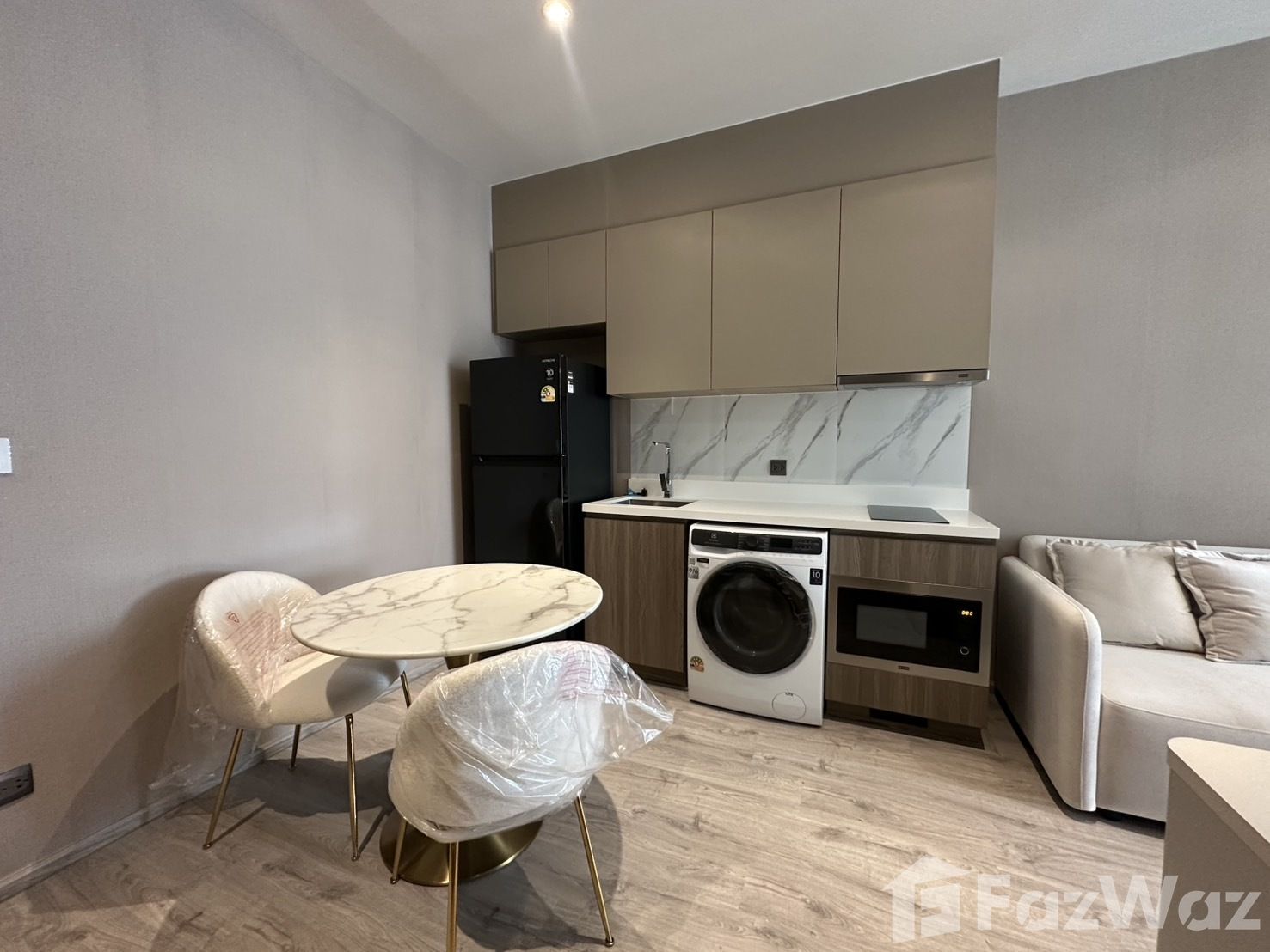 เป็นยูนิตที่ขายพร้อมกับเฟอร์นิเจอร์ครบชุด ที่เรียกได้ว่าเพียงแค่ยกกระเป๋าเสื้อผ้าเข้าไปก็สามารถอยู่อาศัยได้ทันที โดยมักจะมีเฟอร์นิเจอร์ตั้งแต่โซฟา ชั้นวางทีวี ในห้องรับแขก หรืออุปกรณ์เครื่องครัวทั้งหมด รวมไปถึงโต๊ะอาหาร ไล่เรียงไปยังเตียงนอนและตู้เสื้อผ้า ในห้องนอน (รายละเอียดปลีกย่อยอื่นๆ ขึ้นอยู่กับแต่ละยูนิต)