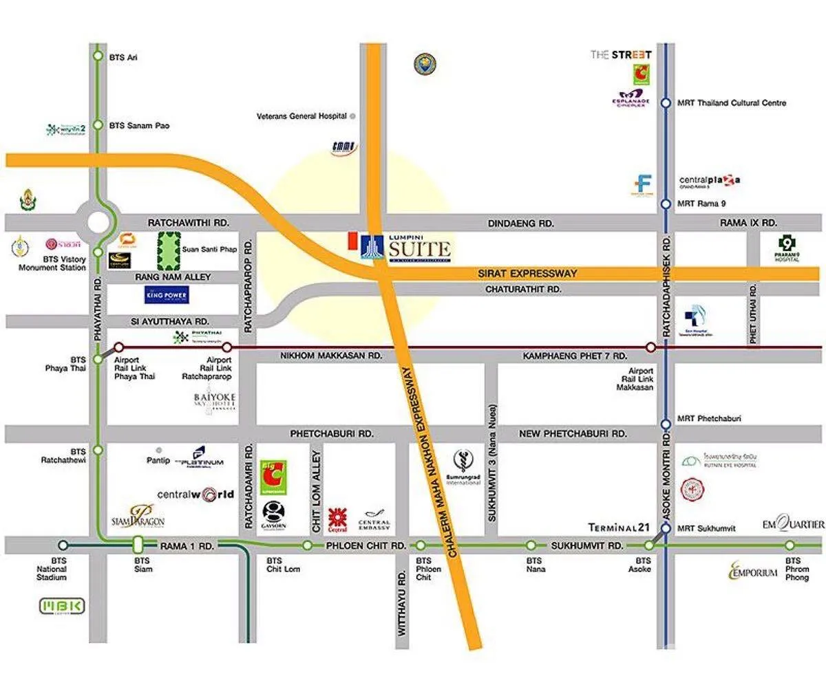 BTS อนุสาวรีย์ชัยสมรภูมิ เป็นสถานีรถไฟฟ้า BTSที่ใกล้ที่สุด โดยห่างจากโครงการ ลุมพินี สวีท ดินแดง-ราชปรารภ ไปประมาณ 1 กม.
