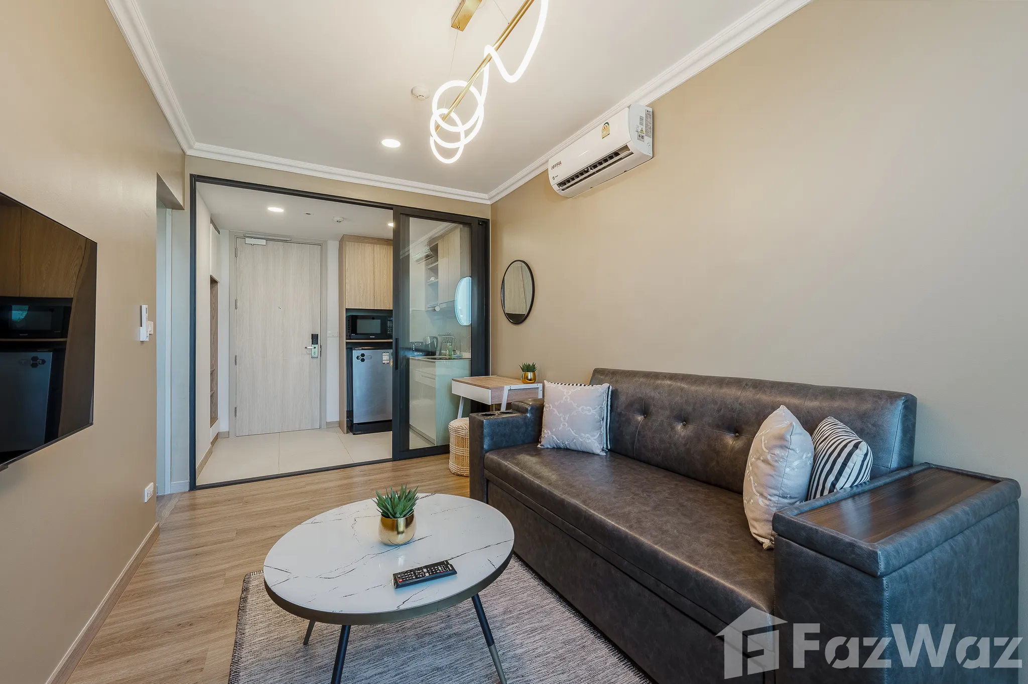 เป็นยูนิตที่ขายพร้อมกับเฟอร์นิเจอร์ครบชุด ที่เรียกได้ว่าเพียงแค่ยกกระเป๋าเสื้อผ้าเข้าไปก็สามารถอยู่อาศัยได้ทันที โดยมักจะมีเฟอร์นิเจอร์ตั้งแต่โซฟา ชั้นวางทีวี ในห้องรับแขก หรืออุปกรณ์เครื่องครัวทั้งหมด รวมไปถึงโต๊ะอาหาร ไล่เรียงไปยังเตียงนอนและตู้เสื้อผ้า ในห้องนอน (รายละเอียดปลีกย่อยอื่นๆ ขึ้นอยู่กับแต่ละยูนิต)