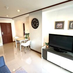 คอนโดค่อนข้างเก่าครับ ราคาเช่าไม่สูงมาก เหมาะสำหรับอยู่อาศัยระยะยาว และเหมาะสำหรับคนที่ต้องการพักผ่อนกันแบบครอบครัว เพราะห้องกว้างมาก มีห้องนอน 2 ห้อง ระเบียงห้องก็กว้างขวาง แต่ภายในเฟอร์นิเจอร์เก่าไปหน่อย แต่ก็ยังใช้ได้อยู่ เพราะส่วนใหญ่เป็นเฟอร์นิเจอร์ไม้แท้ จึงมีความแข็งแรง และทนต่อการใช้งานได้ดีครับ ส่วนพื้นที่ส่วนกลางก็มีครบ ทั้งสระว่ายน้ำ สวนหย่อม ฟิตเนส และชั้นล่างยังมี 7-Eleven ด้วย การซื้อของใช้ต่าง ๆ จึงเป็นเรื่องง่ายและสะดวกมากครับ