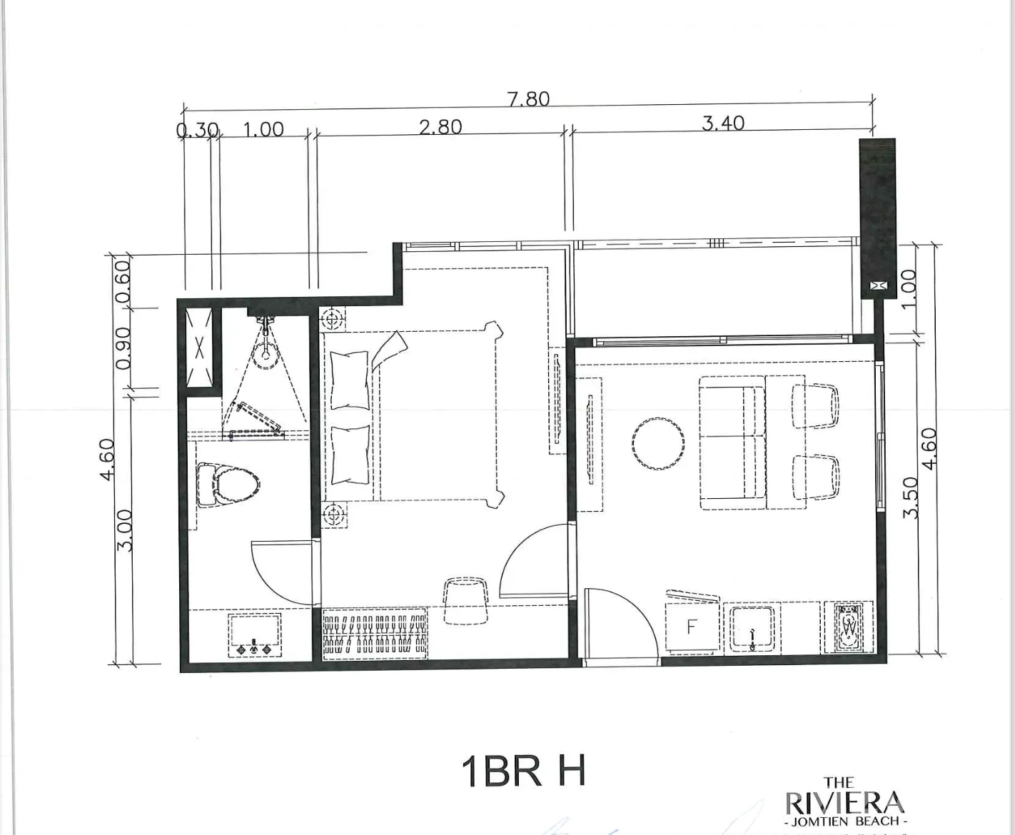 คอนโดให้เช่า 1 ห้องนอน ในโครงการ เดอะ ริเวียร่า จอมเทียน