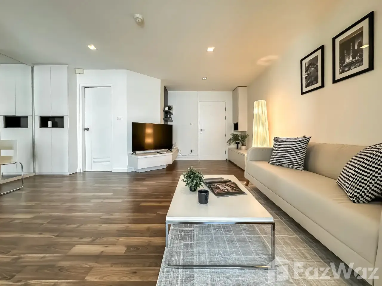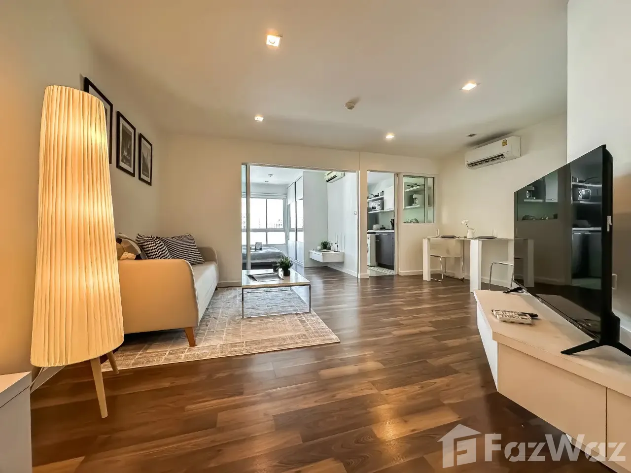 ห้องกว้าง ตกแต่งด้วยเฟอร์นิเจอร์พร้อมอยู่