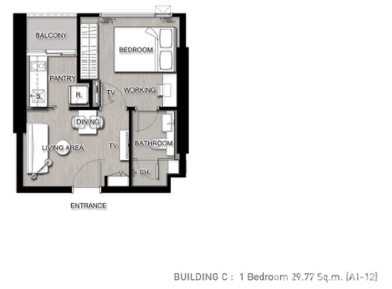 คอนโดให้เช่า 1 ห้องนอน ในโครงการ เดอะ เซนต์ เรสิเดนเซส