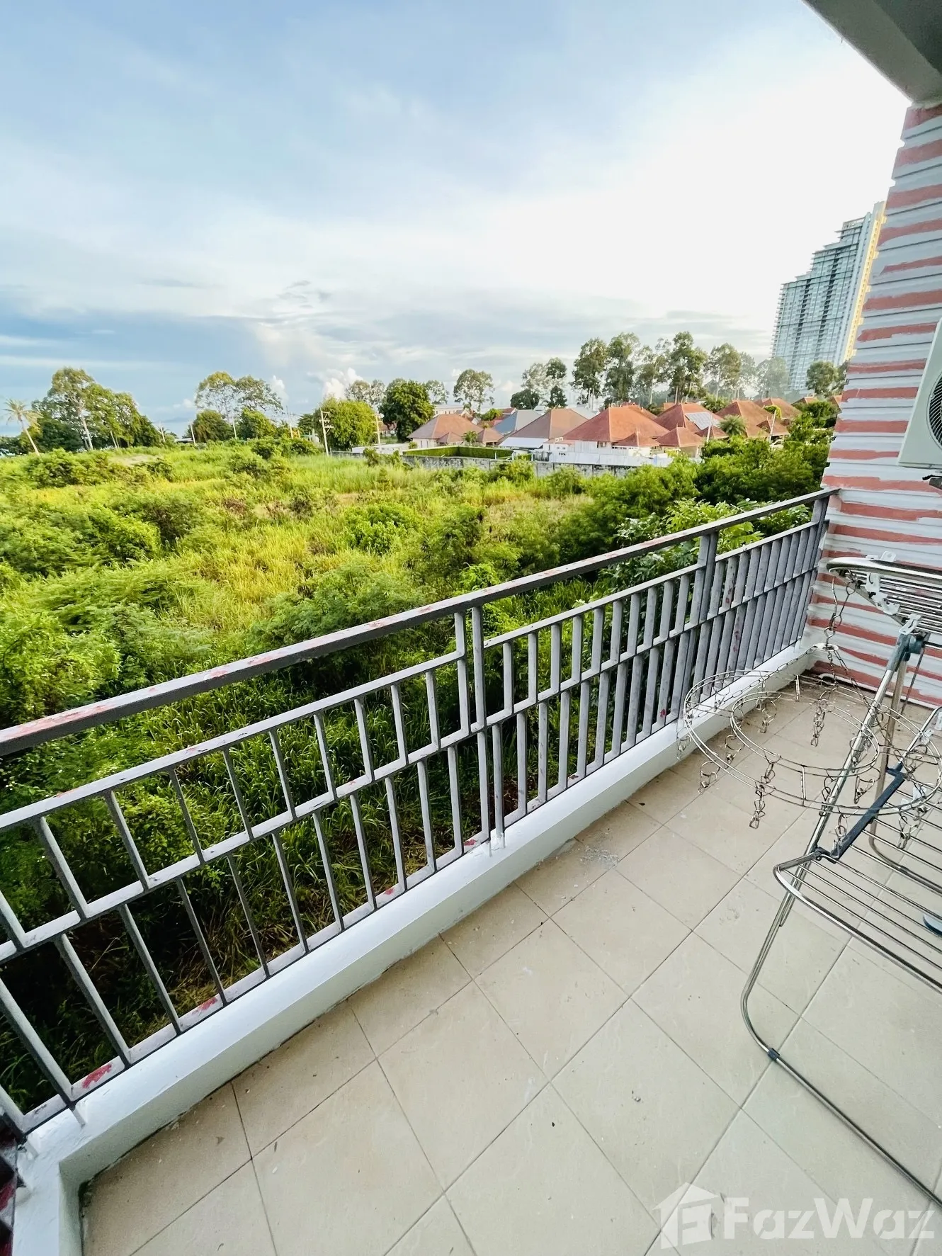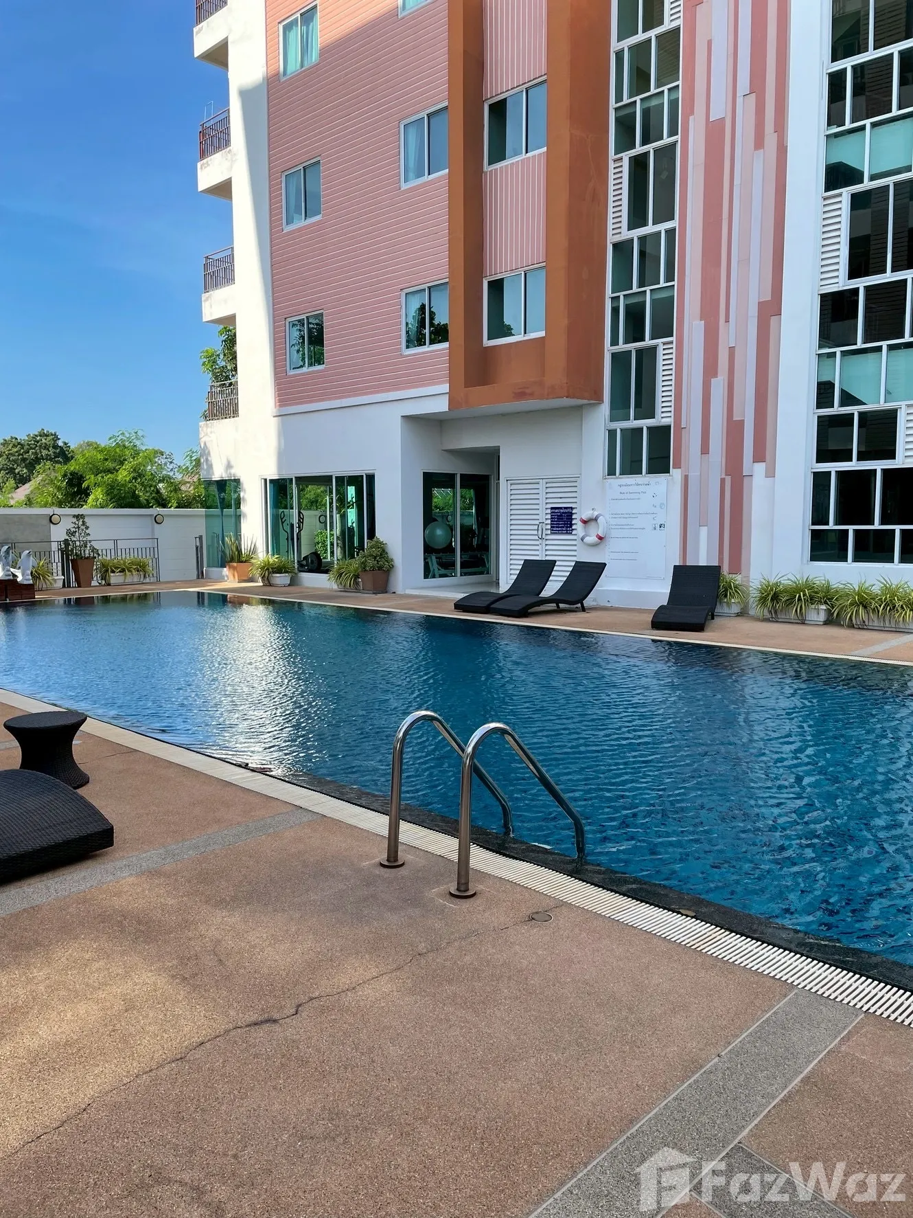 One-bedroom unit on the 3rd floor. 43.2 square meters. Fully furnished. Bedroom with air conditioning, wardrobe, wall shelves and curtains. Bathroom with shower and water heater. 2 balconies. Living room with air conditioning, table, sofa and television. Kitchen with refrigerator, microwave oven, sink and cabinets. Washing machine. Sea view. The condominium has staff and technicians, lifts, lobby, 1 swimming pool, 1 exercise room and car park. Accessible via both Sukhumvit Road and seaside road.