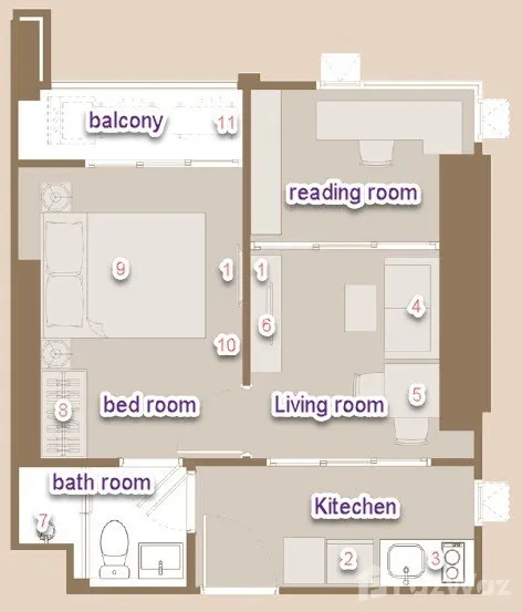 ห้องนอน 1 ห้องนอน