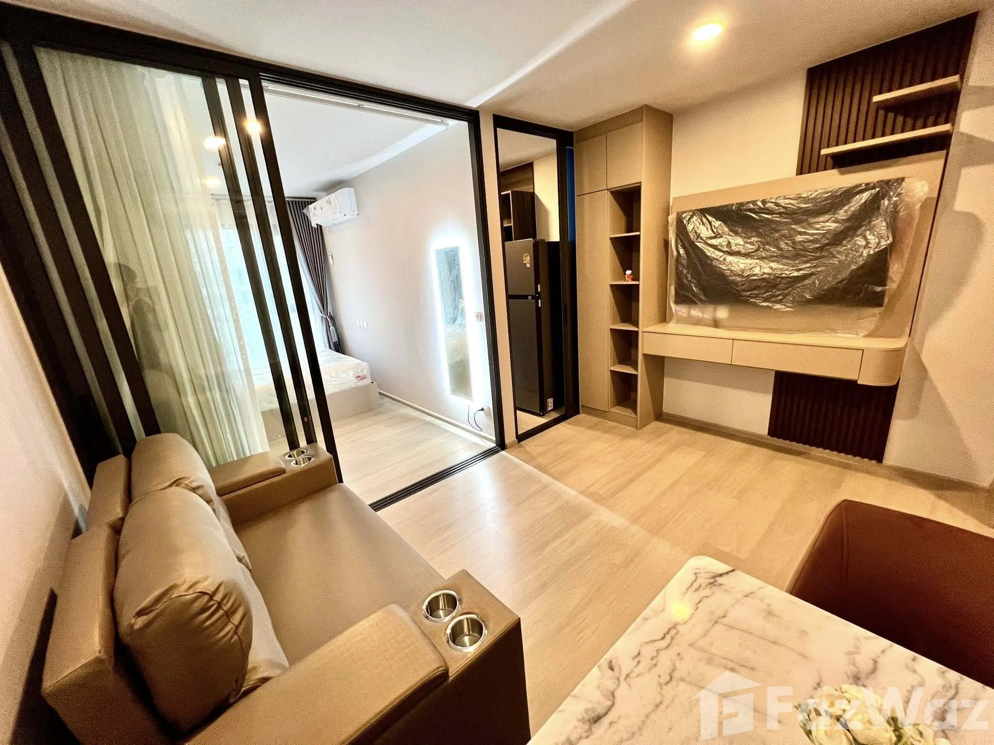เป็นยูนิตที่ขายพร้อมกับการมีเฟอร์นิเจอร์ให้บางส่วน โดยส่วนใหญ่จะเป็นเฟอร์นิเจอร์ชิ้นใหญ่ เช่น เตียงนอน โต๊ะ เก้าอี้ หรือ เครื่องใช้ไฟฟ้าบางส่วน รวมไปถึงเครื่องครัวบางชนิด