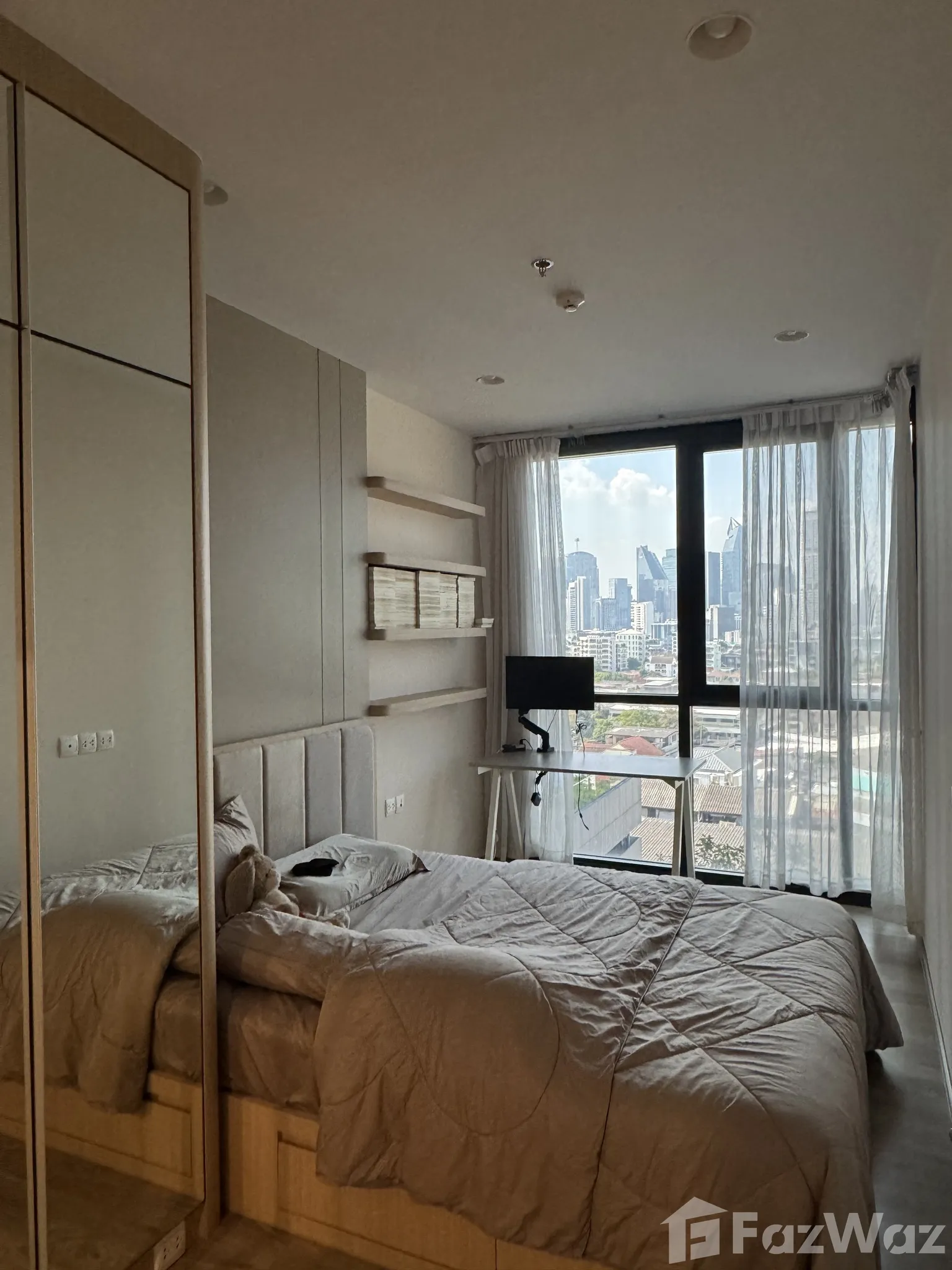 ผมได้เลือกเช่าห้องแบบ 2 ห้องนอน 2 ห้องน้ำ ภายในติดตั้งเฟอร์นิเจอร์ครบ แบ่งเป็นโซนห้องครัว ห้องนั่งเล่น ห้องนอน และห้องน้ำ ตอนผมย้ายเข้ามาที่นี่ ผมแค่ซื้อของใช้ที่จำเป็นอีกบางส่วน ก็สามารถเข้าอยู่ได้เลย พื้นที่ระเบียงกว้างขวาง มองเห็นวิวเมืองรอบ ๆ ได้อย่างสุดสายตา สระว่ายน้ำของคอนโด มีคนใช้บริการน้อย ซึ่งผมชอบมาก ๆ เพราะผมได้ใช้เวลาส่วนตัวได้อย่างเต็มที่เลยครับ โดยรวมแล้วถือว่าโอเค ทำเลที่ตั้งดีเยี่ยม ราคาห้องก็เหมาะสม เหมาะสำหรับคนวัยทำงานอย่างผมมากครับ
