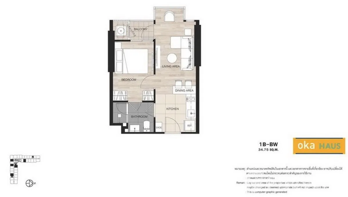 ขนาด 34.93 ตรม. ขนาด