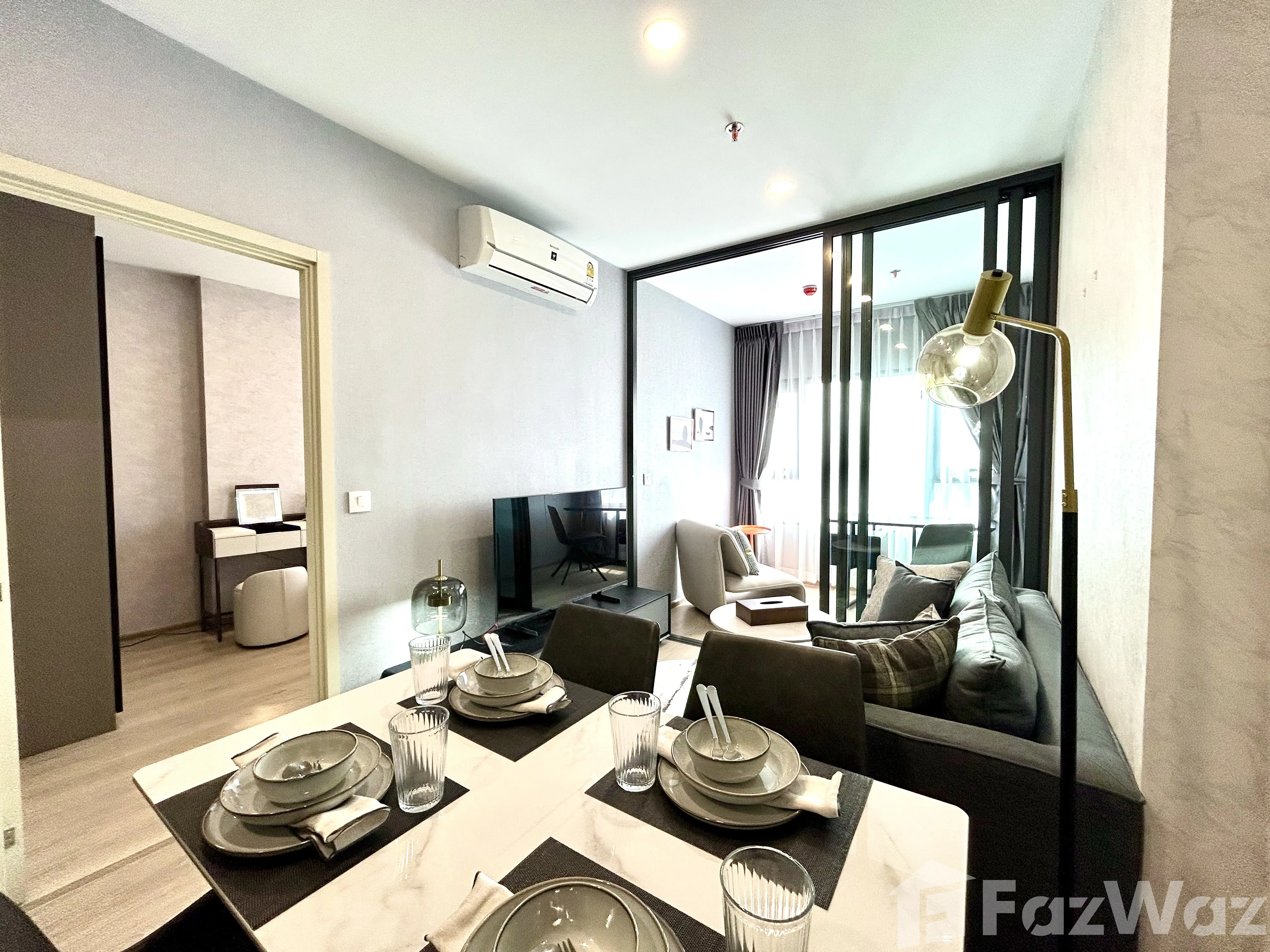 เป็นยูนิตที่ขายพร้อมกับเฟอร์นิเจอร์ครบชุด ที่เรียกได้ว่าเพียงแค่ยกกระเป๋าเสื้อผ้าเข้าไปก็สามารถอยู่อาศัยได้ทันที โดยมักจะมีเฟอร์นิเจอร์ตั้งแต่โซฟา ชั้นวางทีวี ในห้องรับแขก หรืออุปกรณ์เครื่องครัวทั้งหมด รวมไปถึงโต๊ะอาหาร ไล่เรียงไปยังเตียงนอนและตู้เสื้อผ้า ในห้องนอน (รายละเอียดปลีกย่อยอื่นๆ ขึ้นอยู่กับแต่ละยูนิต)