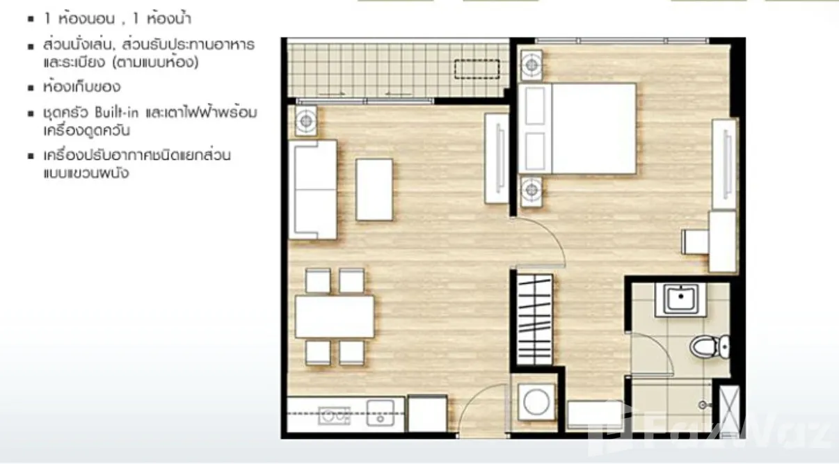 ห้องนอน 1 ห้องนอน