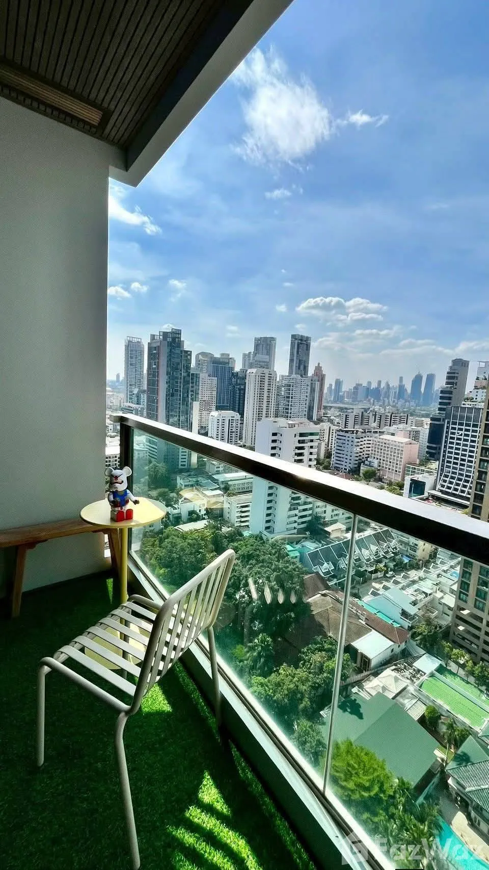 วันนี้ฤกษ์ดีค่ะเพิ่งย้ายเข้ามาอยู่วันแรกค่ะ ห้องที่เราซื้ออยู่นั้นเป็นห้องแบบ 1 ห้องนอน ที่มีขนาดกว้างขวางมาก เฟอร์นิเจอร์บิวท์อินแต่ละอย่างมีความหรูหราและทันสมัย ฟาซิลิตี้บนชั้นดาดฟ้าก็มี สระว่ายน้ำ ฟิตเนส และสวนหย่อม ซึ่งจะเป็นมุมนั่งเล่นอันโปรดปรานของเรายามเย็นค่ะ ที่เลือกซื้อที่นี่ไม่ใช่เพราะความหรูเพียงอย่างเดียว ด้วยเรื่องของทำเลก็เป็นแหล่งธุรกิจ สะดวกต่อการเดินทางด้วย BTS พร้อมพงษ์ และมีห้างหลายแห่งอยู่ใกล้ ๆ ทั้งห้างเทอร์มินอล 21 และ ดิเอ็มควอเทียร์