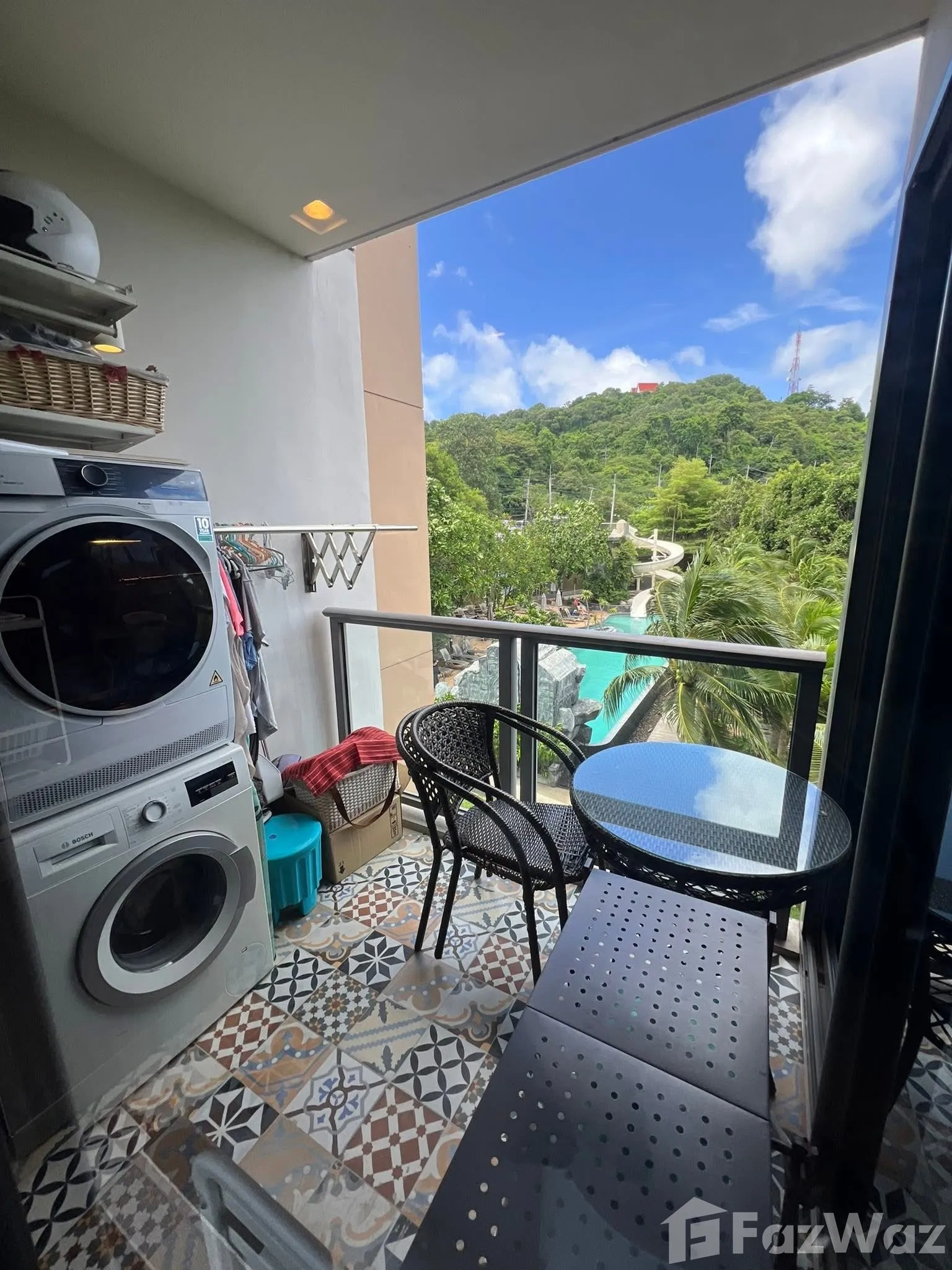 ระเบียงระเบียง เครื่องซักผ้าเครื่องซักผ้า เตาไมโครเวฟเตาไมโครเวฟ ทีวีทีวี เคเบิลทีวีเคเบิลทีวี