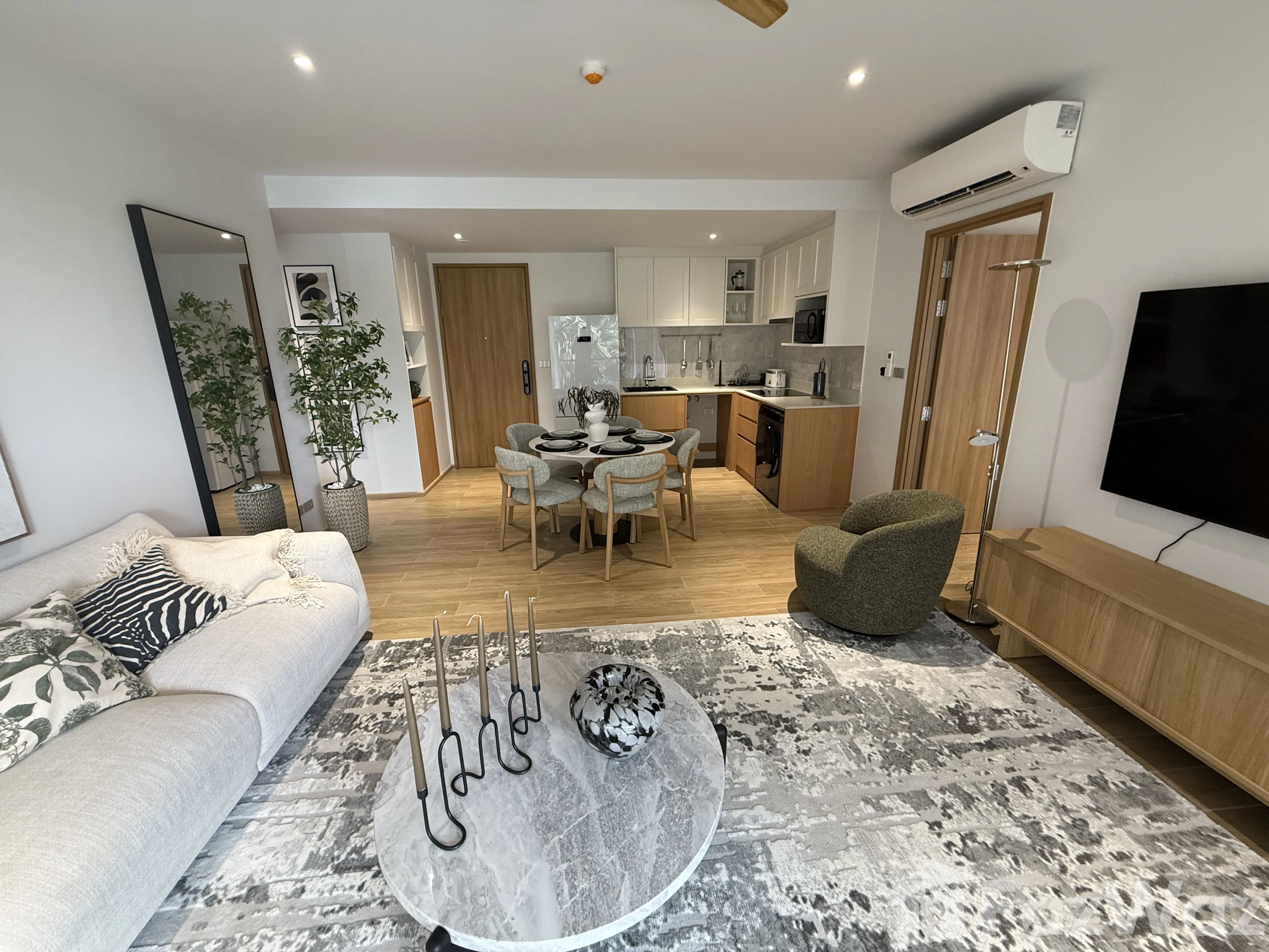 เป็นยูนิตที่ขายพร้อมกับเฟอร์นิเจอร์ครบชุด ที่เรียกได้ว่าเพียงแค่ยกกระเป๋าเสื้อผ้าเข้าไปก็สามารถอยู่อาศัยได้ทันที โดยมักจะมีเฟอร์นิเจอร์ตั้งแต่โซฟา ชั้นวางทีวี ในห้องรับแขก หรืออุปกรณ์เครื่องครัวทั้งหมด รวมไปถึงโต๊ะอาหาร ไล่เรียงไปยังเตียงนอนและตู้เสื้อผ้า ในห้องนอน (รายละเอียดปลีกย่อยอื่นๆ ขึ้นอยู่กับแต่ละยูนิต)