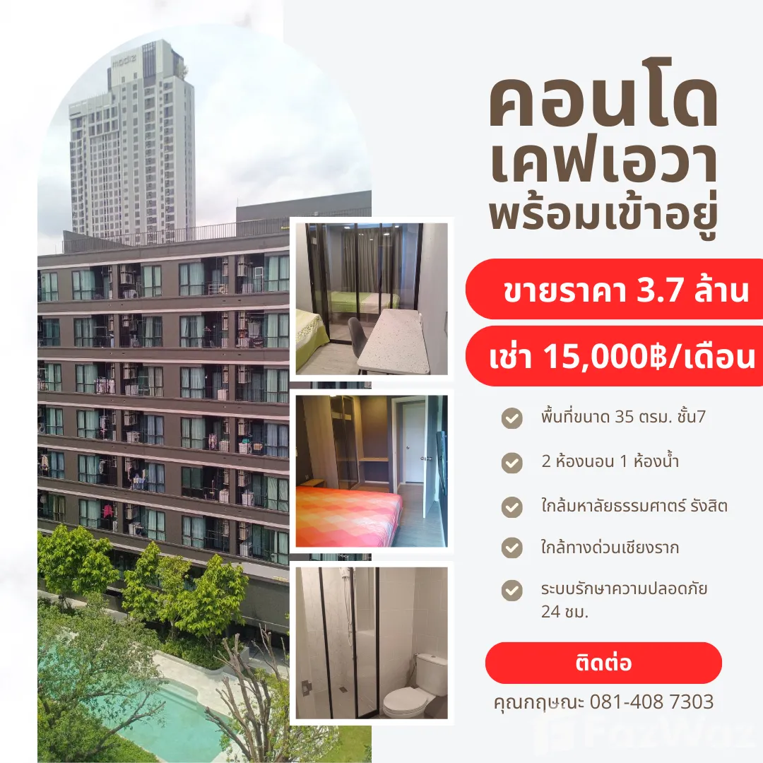 อสังหาริมทรัพย์นี้เป็น คอนโด สำหรับเช่า ขนาด 2 ห้องนอน มีพื้นที่ใช้สอย 35 ตรม. ซึ่งยูนิตนี้อยู่ในโครงการ เคฟ เอวา บนทำเลของ คลองหนึ่ง, ปทุมธานี และสร้างเสร็จแล้วเมื่อ ธ.ค. 2565 ซึ่งคุณสามารถเช่า คอนโด นี้แบบสัญญาระยะยาว ที่ราคาค่าเช่า ฿15,000 ต่อเดือน หรือซื้อด้วยราคา ฿3,700,000