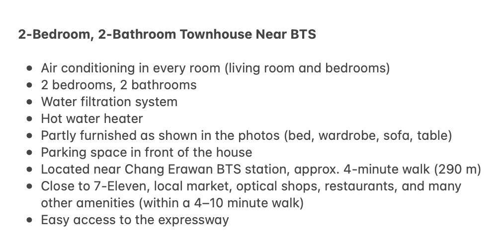 ทาวน์เฮ้าส์ 2 ห้องนอน 2 ห้องน้ำ ใกล้ BTS