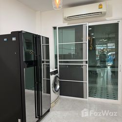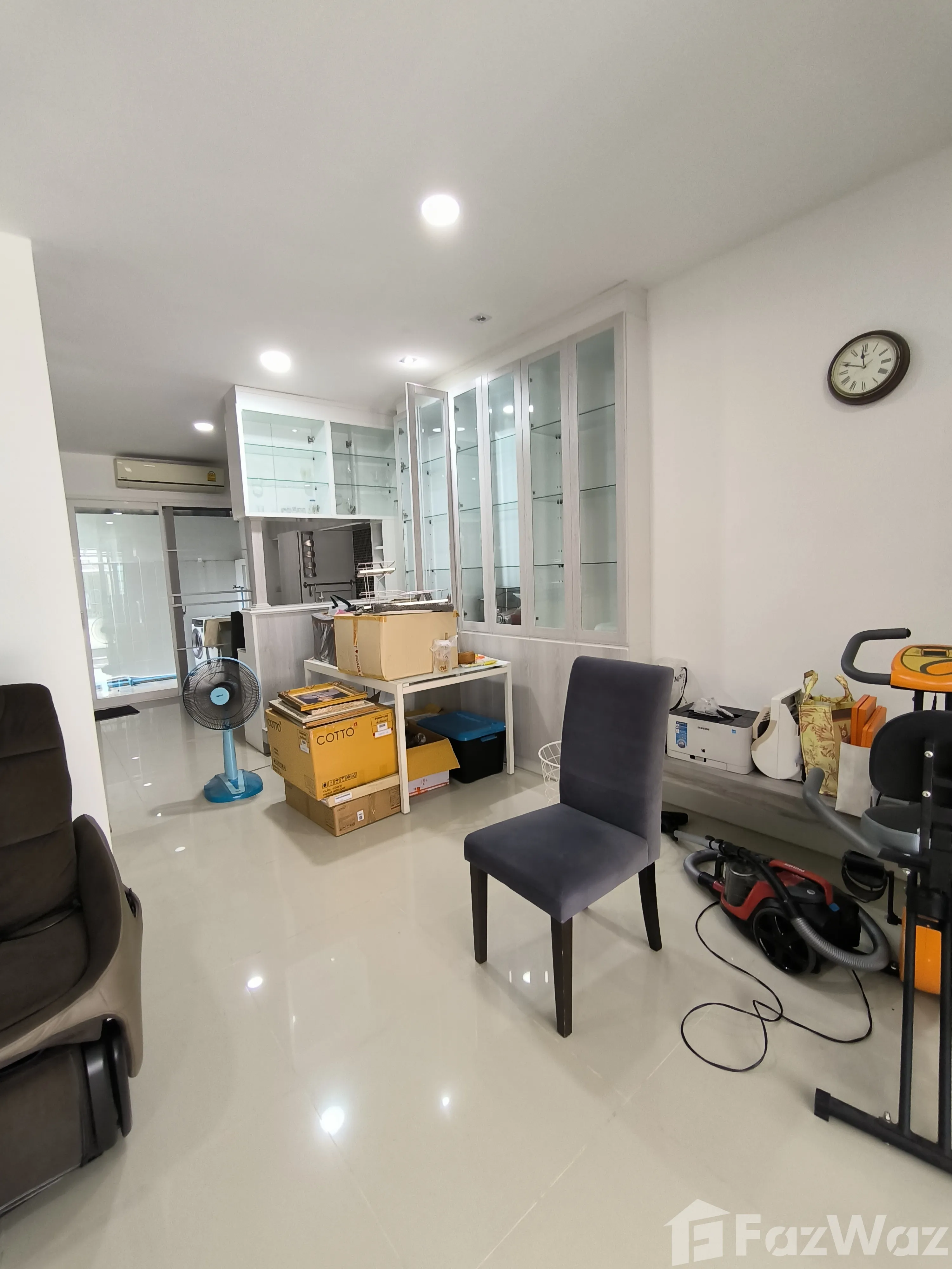 For sale or rent: 25,000 THB/month. 3-story townhome in Klang Muang Suk Sawat Village, near the BTS Skytrain and HomePro Suk Sawat. Newly renovated.