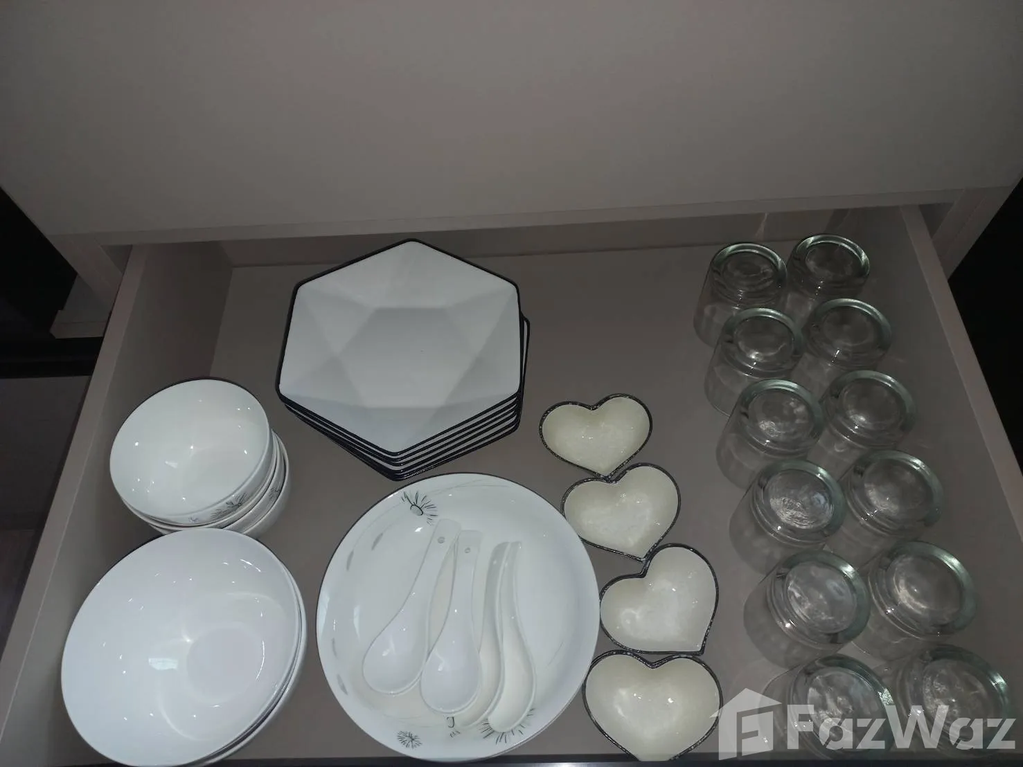 เครื่องใช้ไฟฟ้าครบครัน ได้แก่ เตาเซรามิก ฮูดดูดควัน เตาอบ อ่างล้างจาน เครื่องซักผ้า หม้อทอดลมร้อน ตู้เย็นขนาดใหญ่ และไมโครเวฟ