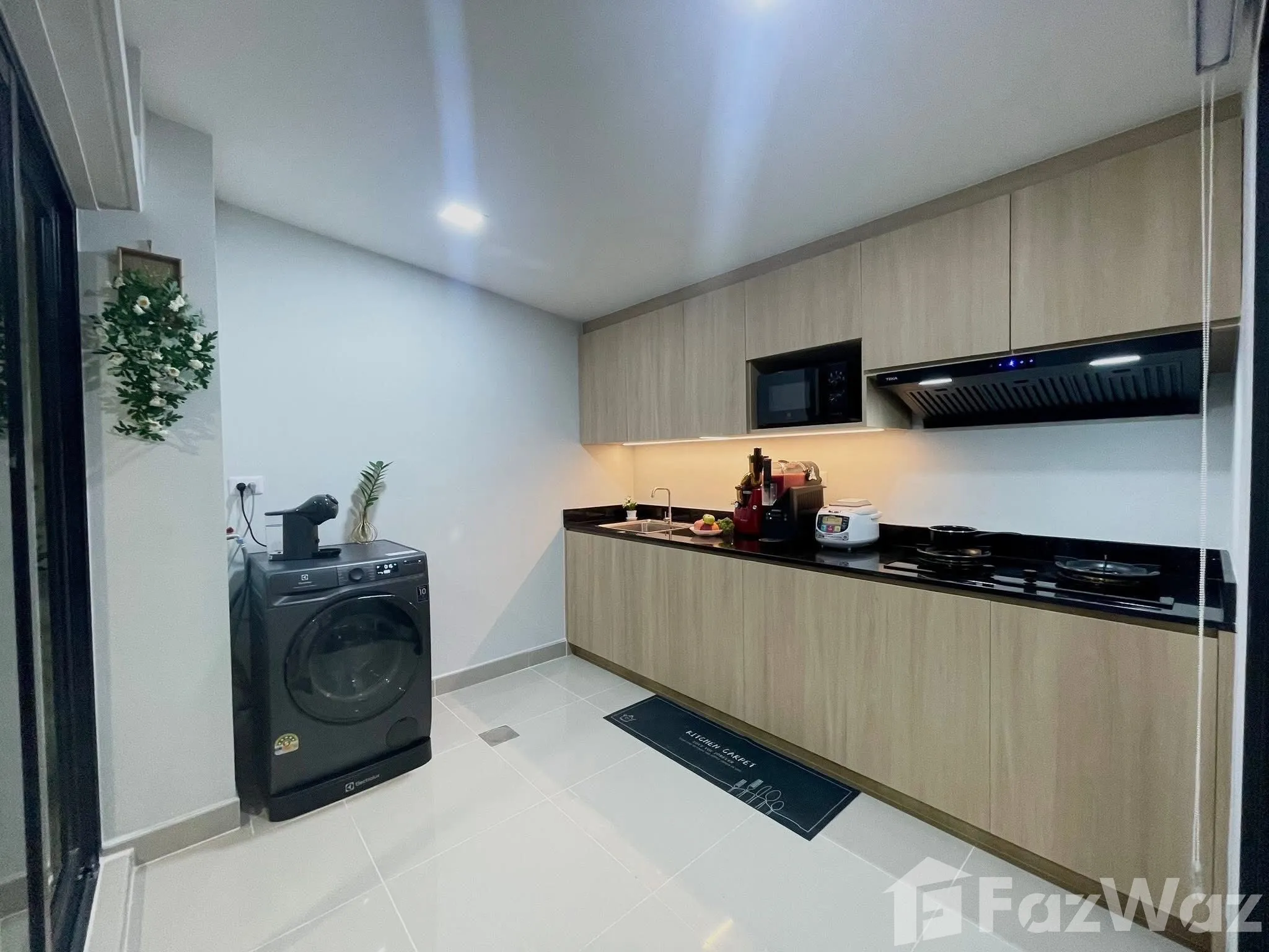 • ลานซักล้างตกแต่งไม้ + หินขาว