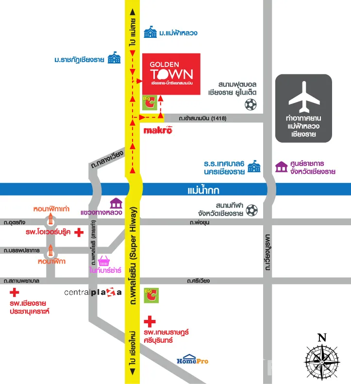 ให้เช่าบ้านทาวน์โฮม Golden Town บิ๊กซี-แยกสนามบิน ตกแต่งพร้อมอยู่ 4ห้องนอน 2ห้องน้ำ 1ห้องครัว จอดรถในบ้านได้ 2 คัน พื้นที่ใช้สอย 130 ตร.ม. ----------------------------- ภายในบ้านประกอบด้วย: ✅ชุดเฟอร์นิเจอร์ห้องนอน 2 ห้อง ✅เครื่องปรับอากาศ 3 เครื่อง ✅โซฟายาวเดี่ยว 1ตัว ✅เครื่องทำน้ำอุ่น 2 เครื่อง ✅ตู้เย็น 6 คิว 1 เครื่อง ✅เครื่องซักผ้า 1 เครื่อง ✅เคาน์เตอร์ครัวปูกระเบื้องแกรนิตโต ✅ไมโครเวฟ 1 เครื่อง ✅เตาแก๊สไฟฟ้า 1 ชุด ✅ชุดโต๊ะอาหาร 6 ที่นั่ง ✅เครื่องปั๊มน้ำและถังเก็บน้ำ ✅ผ้าม่าน+มุ้งลวดทั้งหลัง ----------------------------- 🎁แถมฟรี ✅ค่าส่วนกลาง ✅ใช้บริการสระว่ายน้ำ ✅ใช้บริการฟิตเนส ✅ใช้บริการสนามเทนนิส ✅รปภ. 24 ชม. ----------------------------- 📍สถานที่ตั้ง📍/span> ----------------------------- สถานที่ใกล้เคียง: 🥘 ตลาดสดบ้านดู่ เพียง1นาที 🍱 บิ๊กซี2 แมคโคร เพียง1นาที ✈🧳 สนามบินแม่ฟ้าหลวงเชียงราย เพียง2นาที 🏣ศูนย์ราชการจังหวัดเชียงราย เพียง5นาที 🧑🎓👩🎓มหาวิทยาลัยราชภัฏเชียงราย เพียง5นาที 🏥 โรงพยาบาลกรุงเทพเชียงราย เพียง8นาที ----------------------------- ค่าเช่าเดือนละ 15,000 บาท ประกันความเสียหาย 2 เดือน ค่าไฟและค่าน้ำตามจริง ----------------------------- สอบถามรายละเอียดเพิ่มเติมติดต่อ : Tel: 083-9868399 Line id : CRassets หรือคลิกลิงค์ /span> Facebook Page : บ้านมือสองเชียงราย คุ้มค่า ราคาดี By Chiangrai Assets 🏡 Townhome for Rent – Golden Town Big C–Airport Intersection Fully furnished and ready to move in 4 Bedrooms | 2 Bathrooms | 1 Kitchen | Parking for 2 cars inside the house Usable area: 130 sq.m. 🏠 In-House Facilities: ✅ Bedroom furniture sets for 2 rooms ✅ 3 Air Conditioners ✅ 1 Long single sofa ✅ 2 Water Heaters ✅ 1 Refrigerator (6 cu. ft.) ✅ 1 Washing Machine ✅ Granite-tiled kitchen counter ✅ 1 Microwave ✅ 1 Gas–Electric Stove set ✅ Dining table set (6 seats) ✅ Water pump and water tank ✅ Curtains & mosquito screens throughout the house 🎁 Free Services: ✅ Common area maintenance fee ✅ Swimming pool access ✅ Fitness center access ✅ Tennis court access ✅ 24-hour security 📍 Location: /span> Nearby Places: 🥘 Ban Du Fresh Market – 1 minute 🍱 Big C 2 & Makro – 1 minute ✈ Mae Fah Luang Chiang Rai International Airport – 2 minutes 🏣 Chiang Rai Government Center – 5 minutes 🧑🎓👩🎓 Chiang Rai Rajabhat University – 5 minutes 🏥 Bangkok Hospital Chiang Rai – 8 minutes 💰 Rental Price: 15,000 THB / month Security deposit: 2 months Water & electricity: charged according to actual usage 📞 Contact: Tel: 083-9868399 Line ID: CRassets | /span> Facebook Page: บ้านมือสองเชียงราย คุ้มค่า ราคาดี By Chiangrai Assets 🏡 联排别墅出租 – Golden Town Big C–机场路口 精装修,拎包入住 4 卧室 | 2 卫生间 | 1 厨房 | 室内可停 2 辆车 使用面积:130 平方米 🏠 房内配置: ✅ 2 间卧室配全套家具 ✅ 空调 3 台 ✅ 单人长款沙发 1 张 ✅ 热水器 2 台 ✅ 冰箱 1 台(6 立方英尺) ✅ 洗衣机 1 台 ✅ 厨房花岗岩瓷砖台面 ✅ 微波炉 1 台 ✅ 燃气电炉 1 套 ✅ 餐桌椅套装(6 个座位) ✅ 水泵及储水箱 ✅ 全屋窗帘及纱窗 🎁 免费配套: ✅ 免公共区域管理费 ✅ 可使用游泳池 ✅ 可使用健身房 ✅ 可使用网球场 ✅ 24 小时安保 📍 位置: /span> 周边配套: 🥘 Ban Du 生鲜市场 – 1 分钟 🍱 Big C 2 & Makro – 1 分钟 ✈ 清莱皇太后国际机场 – 2 分钟 🏣 清莱省政府中心 – 5 分钟 🧑🎓👩🎓 清莱皇家大学 – 5 分钟 🏥 曼谷医院清莱分院 – 8 分钟 💰 租金: 15,000 泰铢 / 月 押金:2 个月 水电费按实际使用另计 📞 联系方式: 电话:083-9868399 Line:CRassets | /span> Facebook:บ้านมือสองเชียงราย คุ้มค่า ราคาดี By Chiangrai Assets