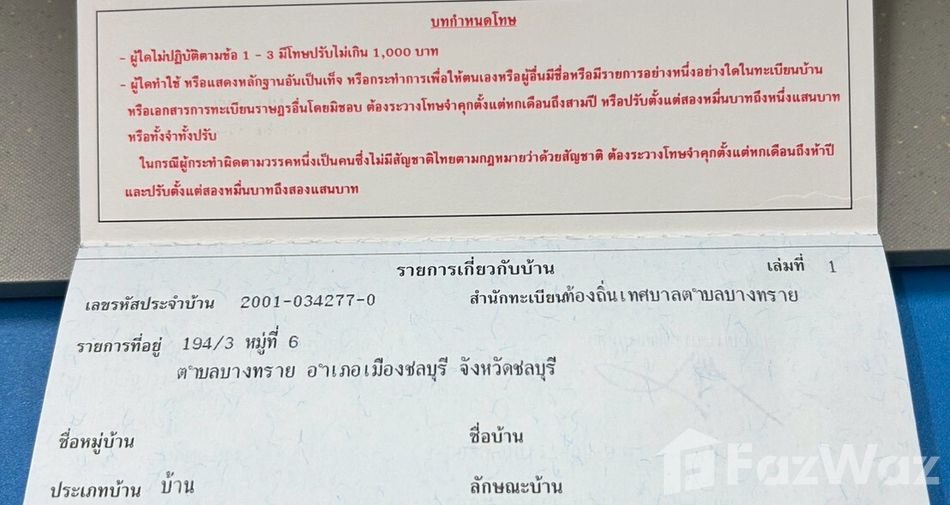 บ้านเช่า ในตำบลบางทราย ใจกลางเมืองชลบุรี | ฿6,500