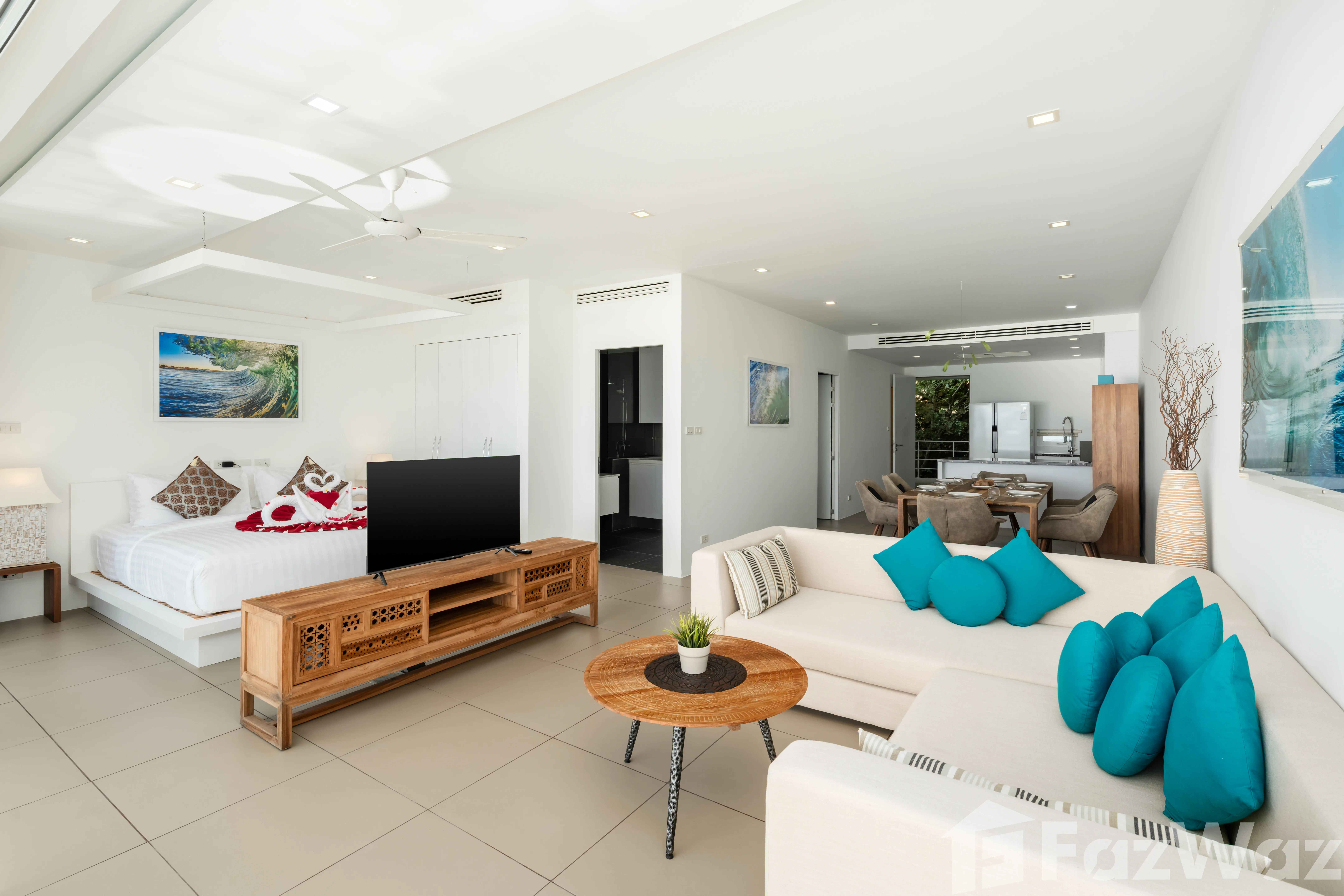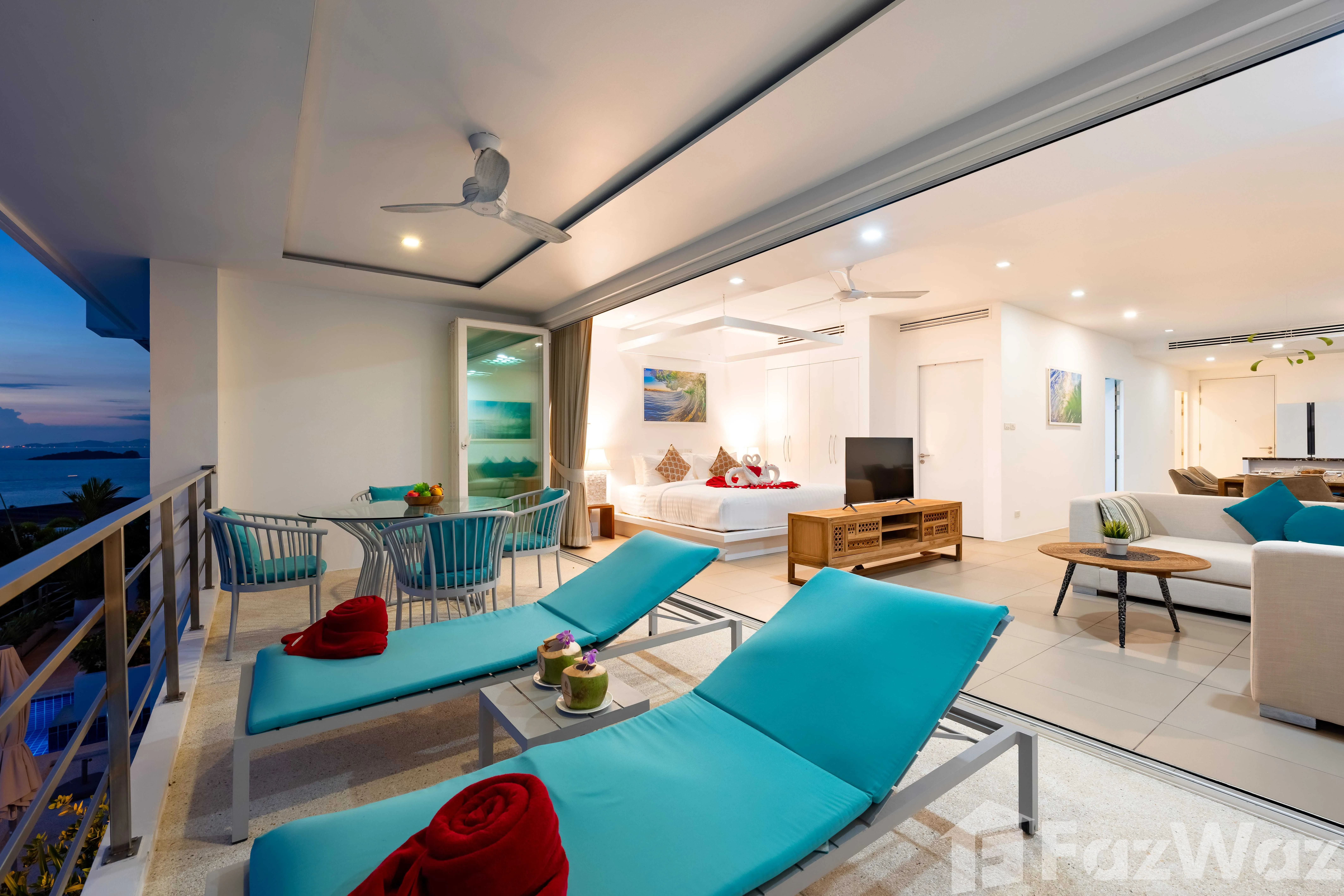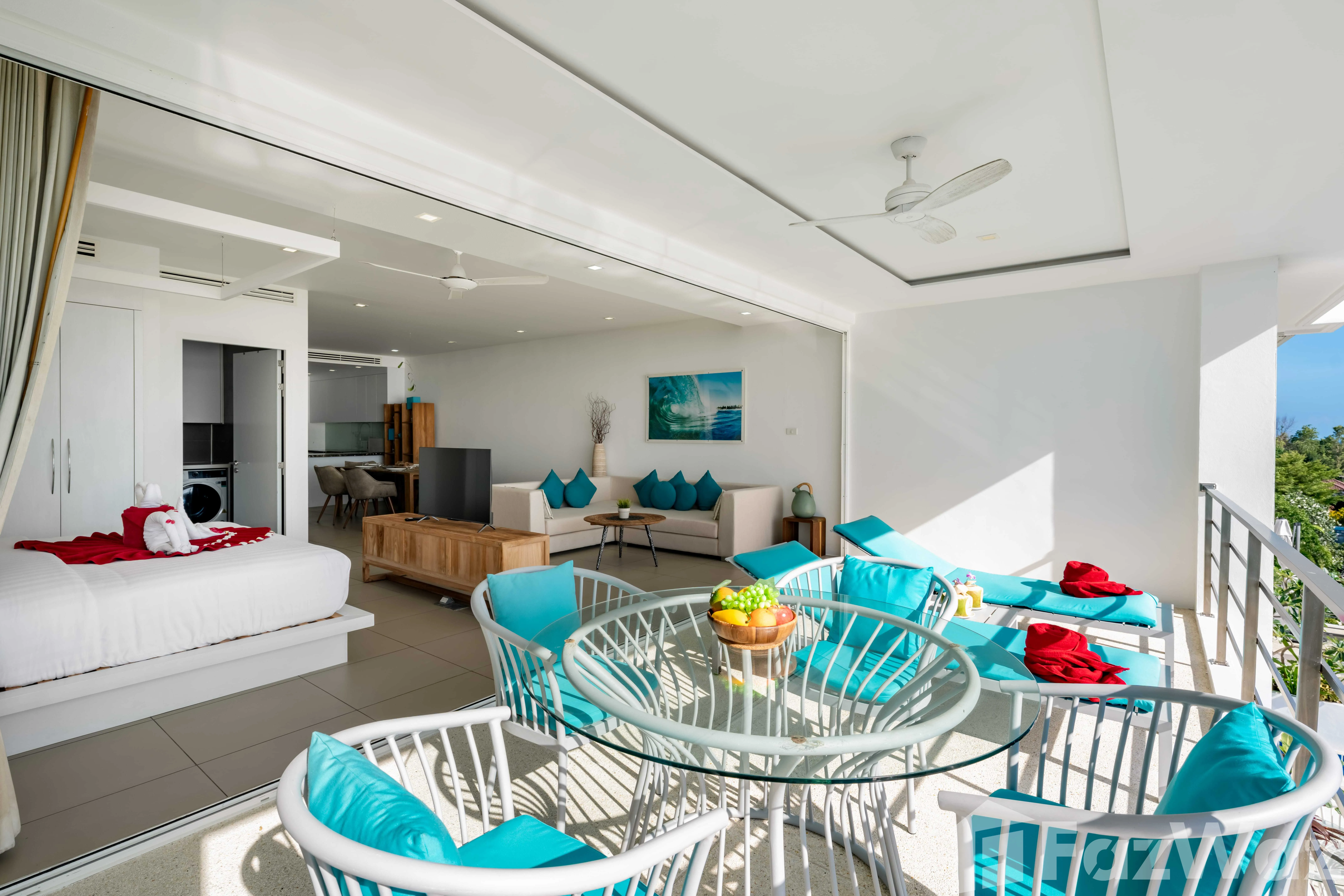 อพาร์ทเมนท์ทันสมัยพร้อมพื้นที่นอนแบบเปิดโล่งและระเบียง