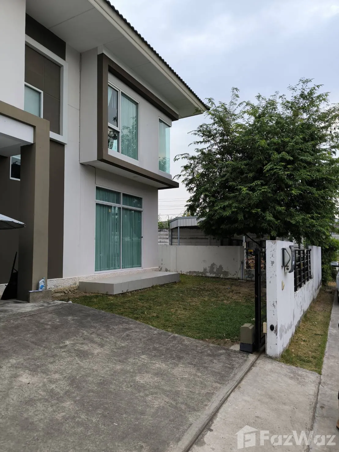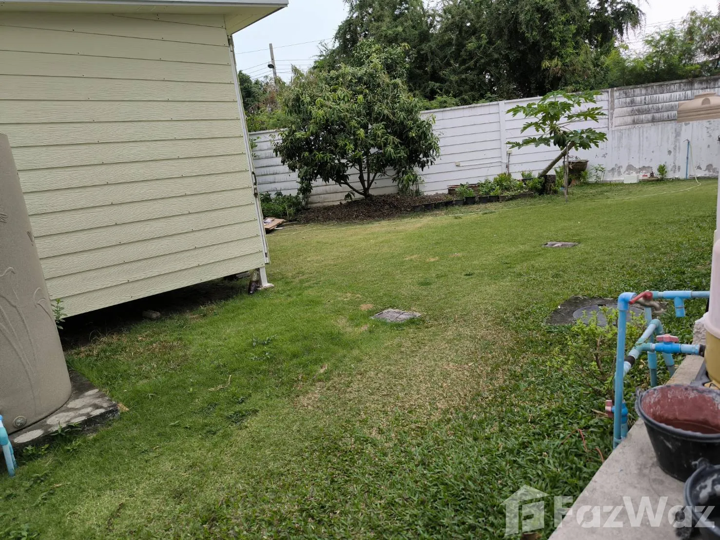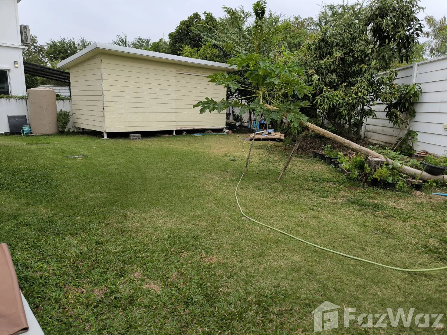 For rent 35,000 baht / month, Baan The Trust Village, Phraeksa Mai, corner house with fruit garden 93 square wah of land