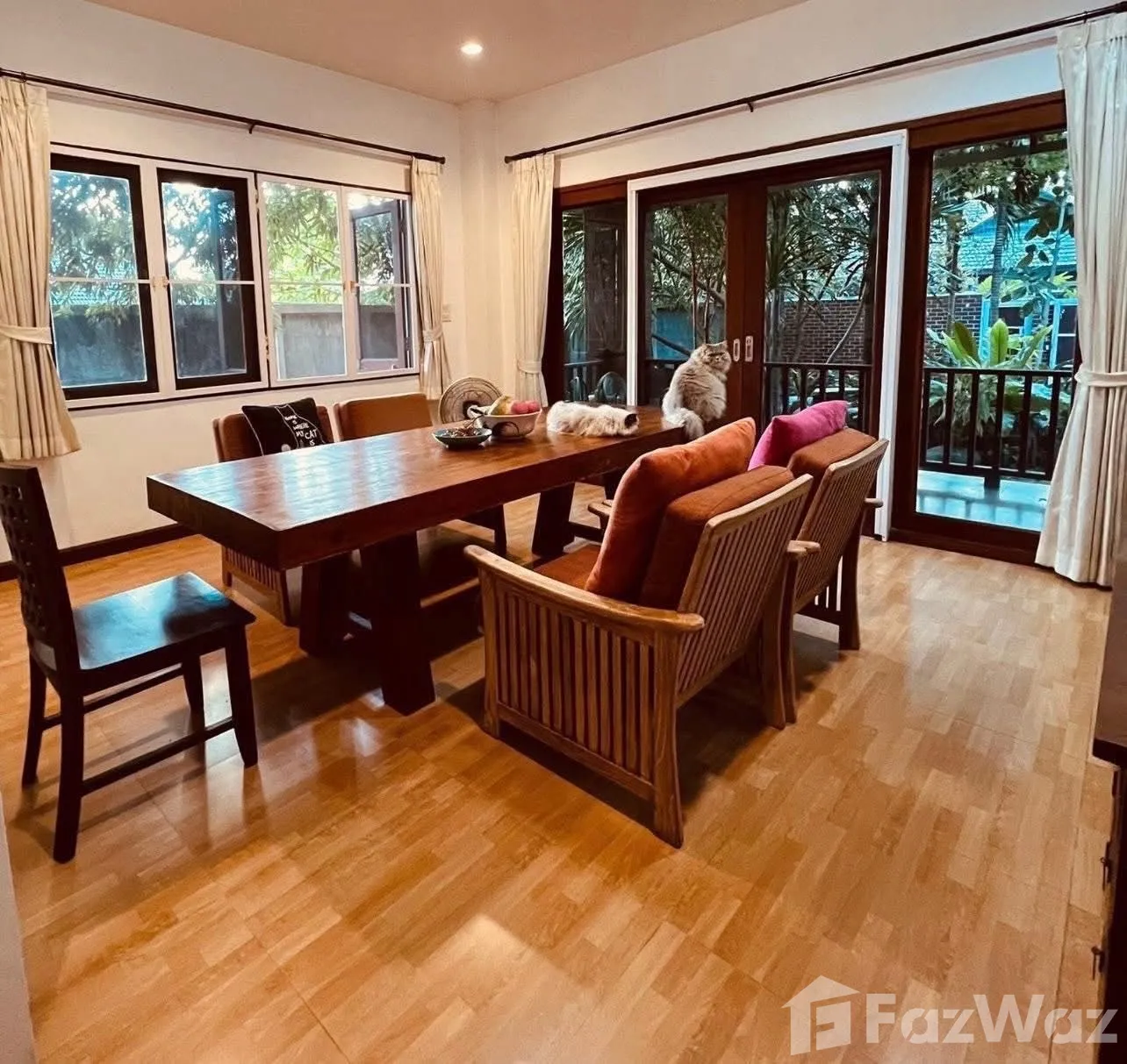 The lot is generously sized and surrounded by a lush, shaded garden that adds to the overall tranquility. The interior is thoughtfully laid out and comes fully furnished—everything from air conditioning units and a comfortable sofa to a full dining set and more. The community also offers great shared amenities like a tennis court, a clubhouse, a local park, and 24/7 security. It's been a really reassuring and enjoyable living experience.