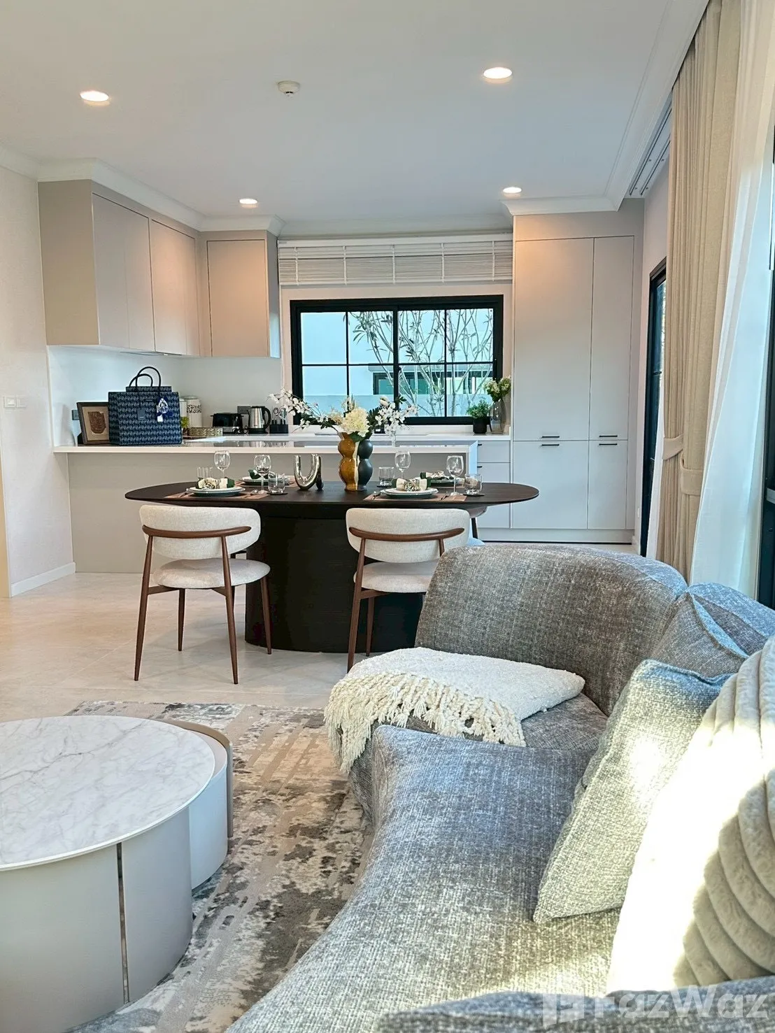 เป็นยูนิตที่ขายพร้อมกับเฟอร์นิเจอร์ครบชุด ที่เรียกได้ว่าเพียงแค่ยกกระเป๋าเสื้อผ้าเข้าไปก็สามารถอยู่อาศัยได้ทันที โดยมักจะมีเฟอร์นิเจอร์ตั้งแต่โซฟา ชั้นวางทีวี ในห้องรับแขก หรืออุปกรณ์เครื่องครัวทั้งหมด รวมไปถึงโต๊ะอาหาร ไล่เรียงไปยังเตียงนอนและตู้เสื้อผ้า ในห้องนอน (รายละเอียดปลีกย่อยอื่นๆ ขึ้นอยู่กับแต่ละยูนิต)
