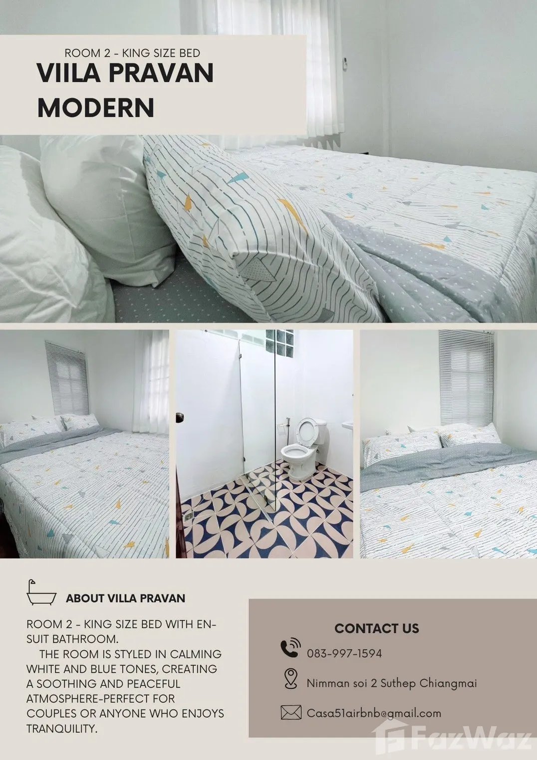 อสังหาริมทรัพย์นี้เป็น บ้านเดี่ยว สำหรับเช่า ขนาด 4 ห้องนอน มีพื้นที่ใช้สอย 230 ตรม. อยู่ในทำเล สุเทพ, เชียงใหม่ ซึ่งคุณสามารถเช่า บ้านเดี่ยว นี้ได้ด้วยราคาค่าเช่า ฿85,000 ต่อเดือน