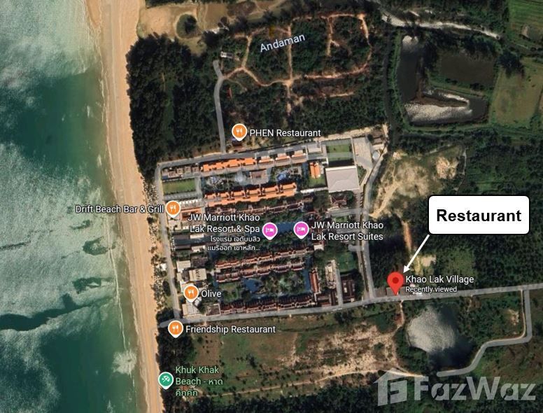 ร้านอาหารตกแต่งพร้อมใช้งาน ตั้งอยู่ทางเข้าโรงแรม JW Marriott เขาหลัก โรงแรมห้าดาวนี้มีผู้เข้าพักเต็มตลอดทั้งปีมากกว่า 400 ห้อง และกำลังมีการก่อสร้างเพิ่มเติม ร้านอาหารดังกล่าวอยู่ในโครงการที่มีธุรกิจหลายแห่งเปิดดำเนินการอยู่แล้ว และได้รับประโยชน์จากการสัญจรของลูกค้าตลอดทั้งปี   ก่อนสถานการณ์โควิด-19 เจ้าของได้เปิดร้านอาหารแห่งนี้มามากว่า 10 ปี ปัจจุบันเจ้าของมองหาผู้เช่ามาบริหารต่อ ร้านอาหารเป็นอาคารพาณิชย์ 2 ห้องติดกัน หน้ากว้าง 8 เมตร และมีห้องน้ำ ปรับปรุงเพียงเล็กน้อยก็พร้อมเปิดดำเนินการได้ทันที   ผมยินดีที่จะส่งรายละเอียดเพิ่มเติมหรือจัดนัดหมายเข้าชมสถานที่ตามความสะดวกของท่าน หากท่านสนใจ กรุณาติดต่อกลับมาได้ที่ โทรศัพท์/ไลน์/WhatsApp หมายเลข +66987826599