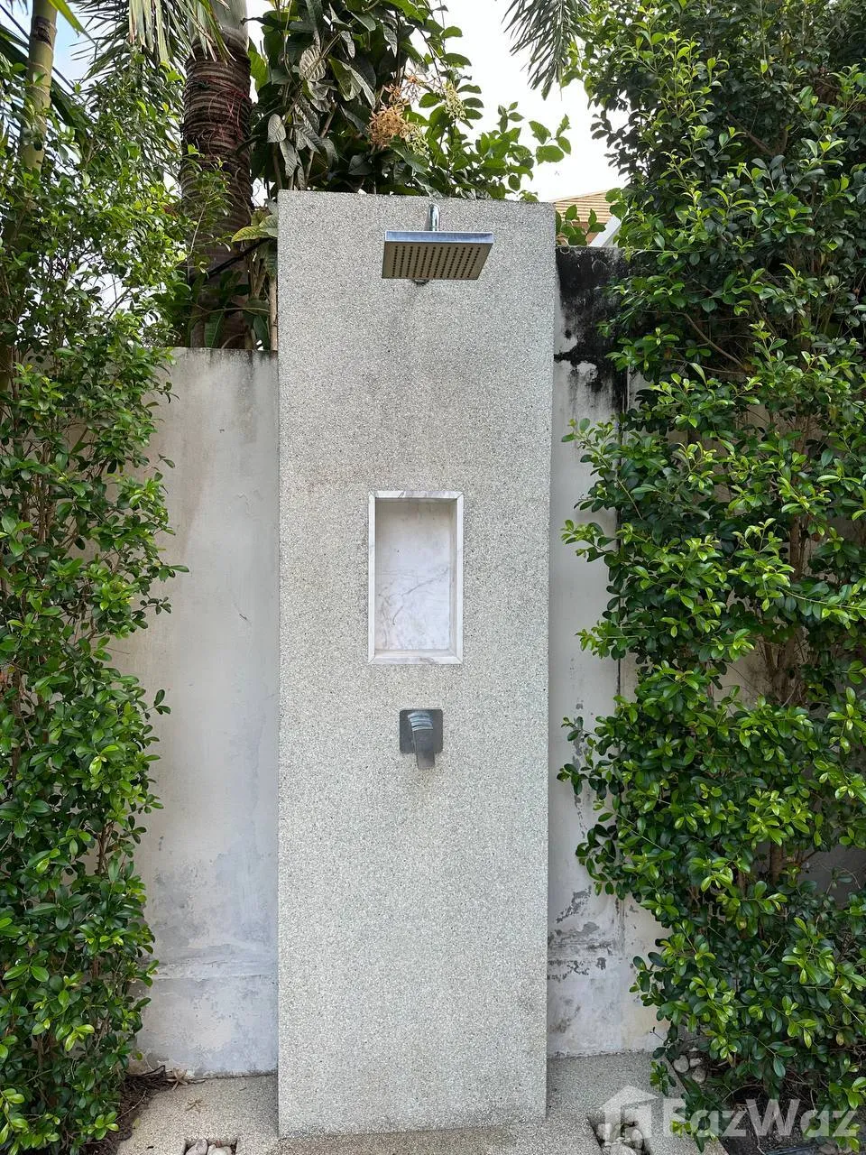 เป็นการรวมขนาดของพื้นที่ก่อสร้างภายนอก เช่น สระว่ายน้ำ, ชานบ้าน, ที่จอดรถ และ ศาลา แต่จะไม่รวมพื้นที่สวนเข้าไปด้วย