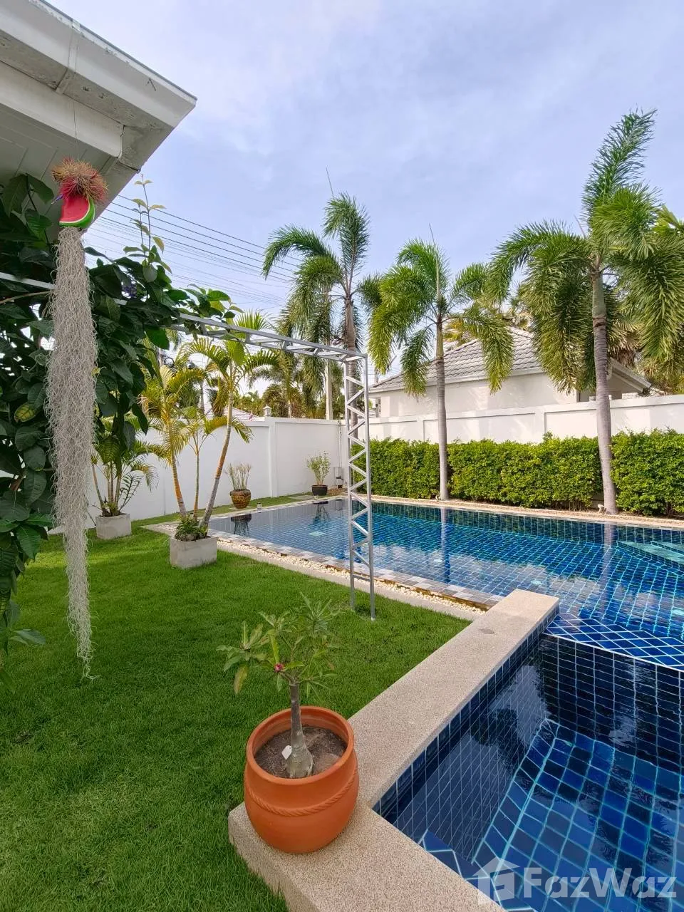 พูลวิลล่าออกแบบได้สวยงามและมีความเรียบหรูครับ มีสิ่งอำนวยความสะดวกภายในบ้านไม่ว่าจะเป็น สระว่ายน้ำ ที่จอดรถ ระบบน้ำร้อนที่มีให้ทุกห้อง ที่สำคัญเงียบสงบและมีความเป็นส่วนตัวสูงมาก เหมาะกับการอาศัยแบบครอบครัวที่รักความสงบ ละแวกโครงการหาของกินง่าย มีหลากหลายตัวเลือก ใช้เวลาเดินทางไปยังตลาดหัวหินไนท์มาร์เก็ต ประมาณ 15 นาทีเท่านั้นเองครับ