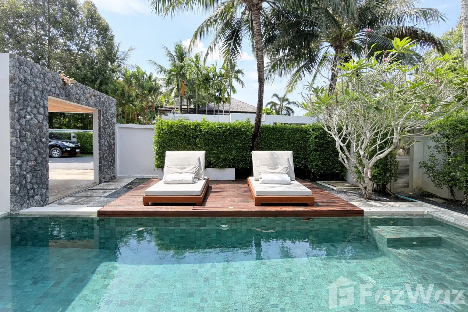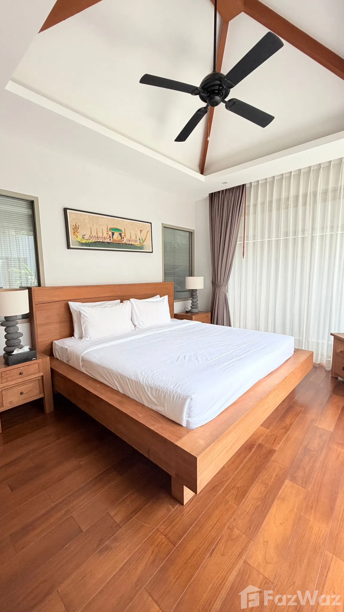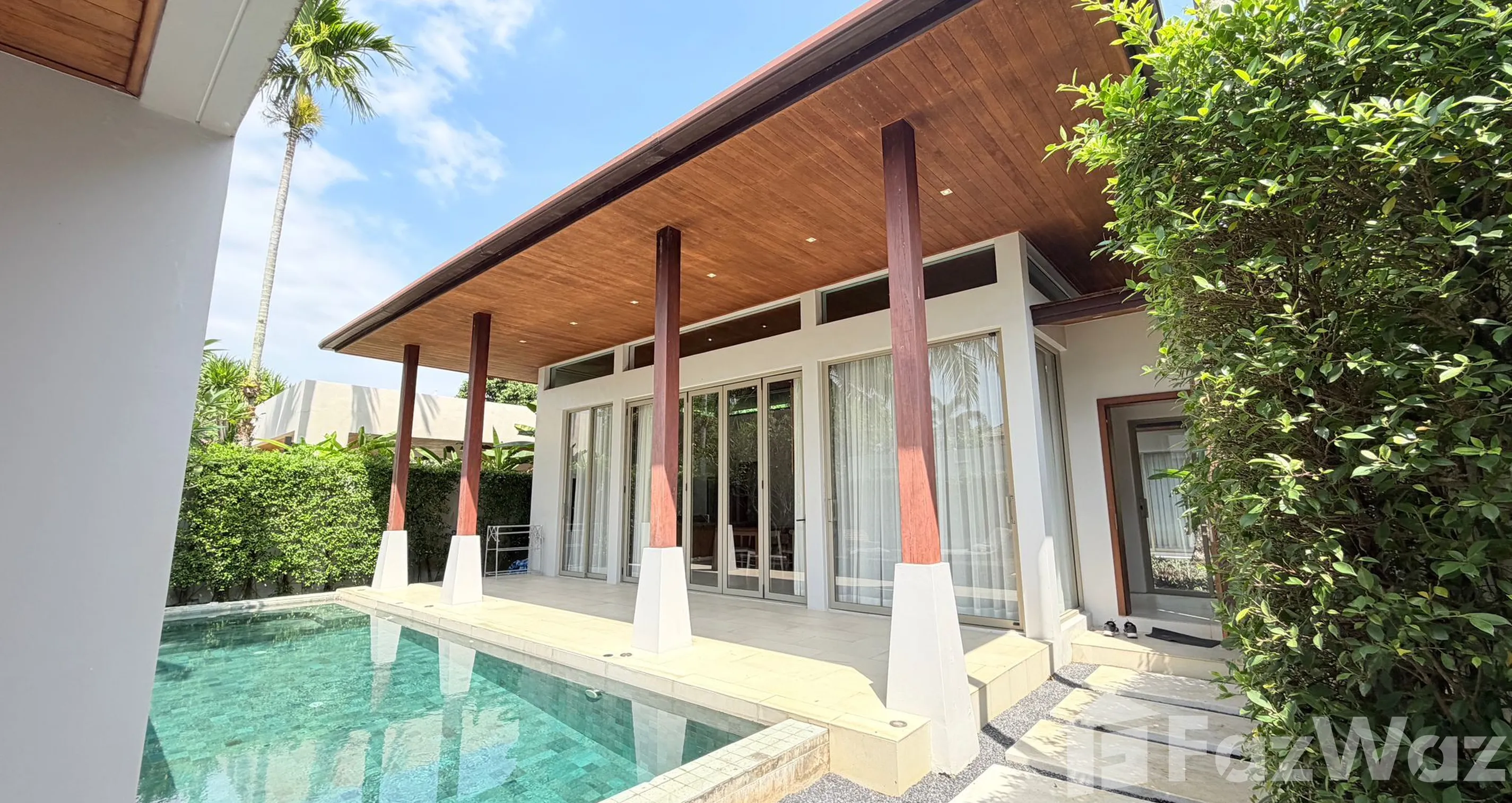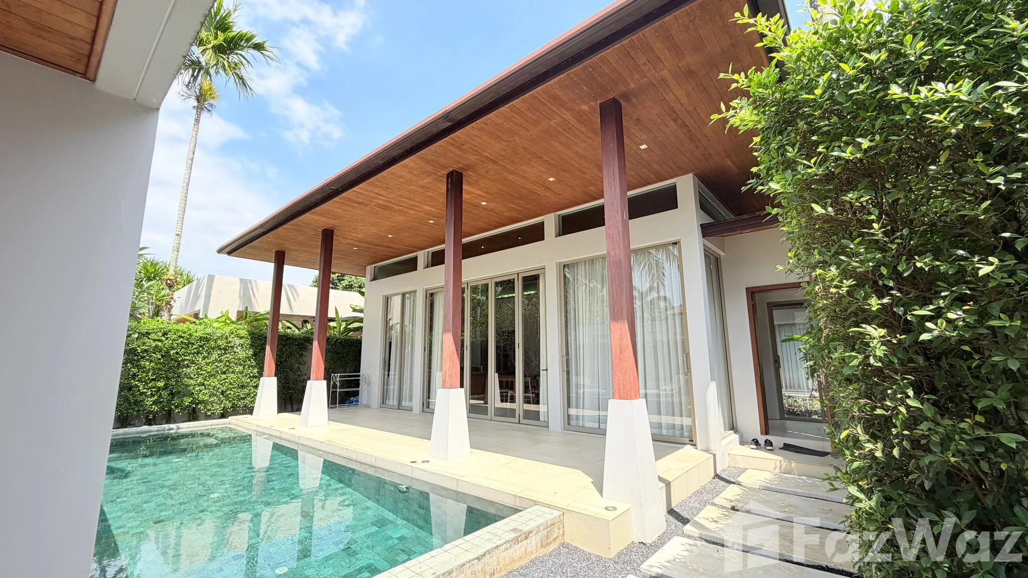 การตกแต่งหรูหราและฉันชอบมาก ๆ เพราะมีที่อาบน้ำกลางแจ้งและพื้นที่จัดปาร์ตี้ขนาดใหญ่ การออกแบบเป็นส่วนตัวสุด ๆ และในบ้านมี 3 ห้องนอน ฉันคิดว่าเหมาะกับอยู่เป็นครอบครัวใหญ่ หรือถ้าจะซื้อเป็นบ้านพักตากอากาศก็คุ้มค่า เพราะการเดินทางก็ไม่ไกลจากแหล่งอำนวยความสะดวกเลย อยู่ใกล้หาดบางเทาและหาดลายัน มีร้านสะดวกซื้อมากมายบริเวณรอบ ๆ ห่างจากซูเปอร์มาร์เก็ตและโซนลากูน่าประมาณ 10-15 นาทีหากเดินทางโดยรถยนต์ค่ะ
