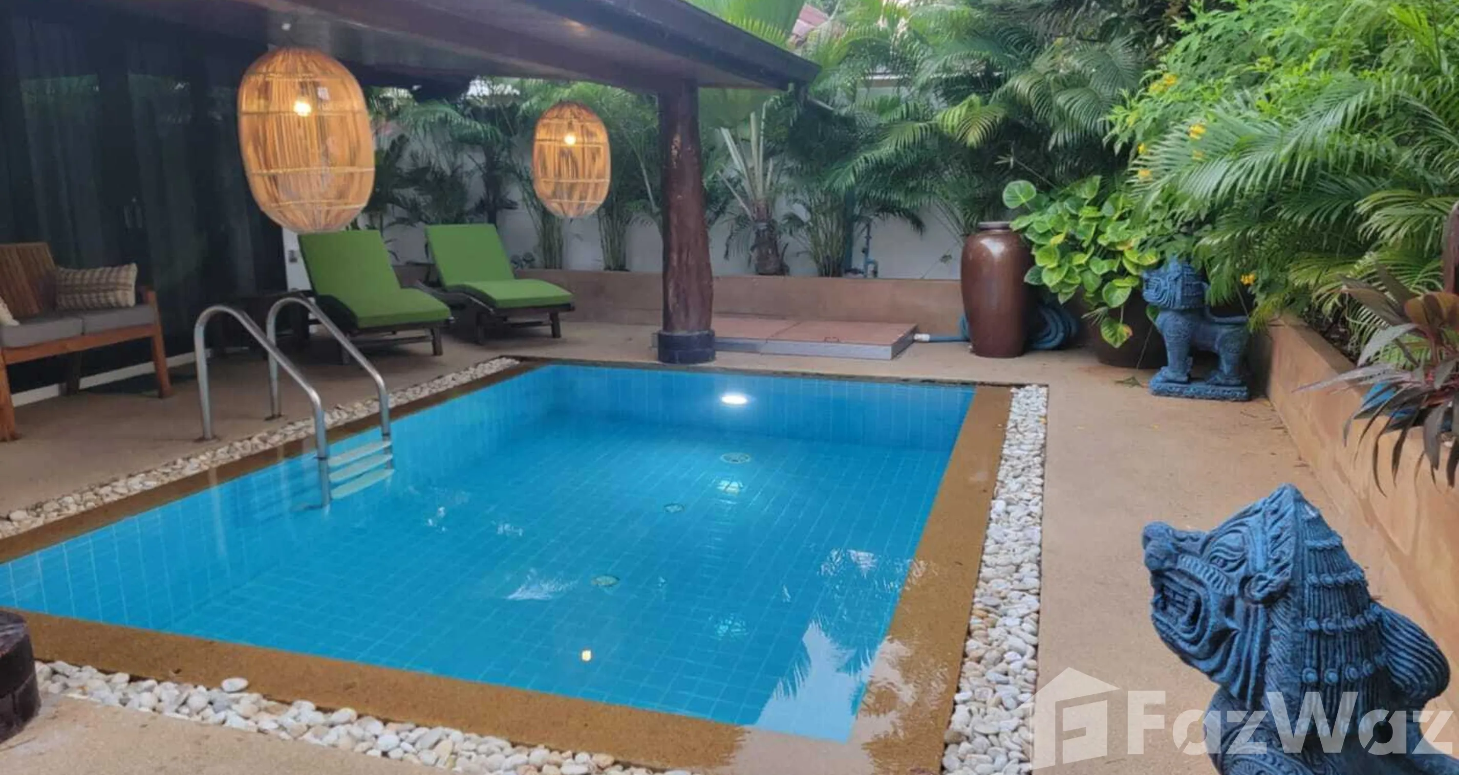 สระว่ายน้ำส่วนตัวสระว่ายน้ำส่วนตัว สวนส่วนตัวสวนส่วนตัว ชานบ้านชานบ้าน ที่จอดรถที่จอดรถ ห้องอาบน้ำกลางแจ้งห้องอาบน้ำกลางแจ้ง เครื่องซักผ้าเครื่องซักผ้า เตาไมโครเวฟเตาไมโครเวฟ เตาอบเตาอบ ทีวีทีวี คนดูแลสวนคนดูแลสวน
