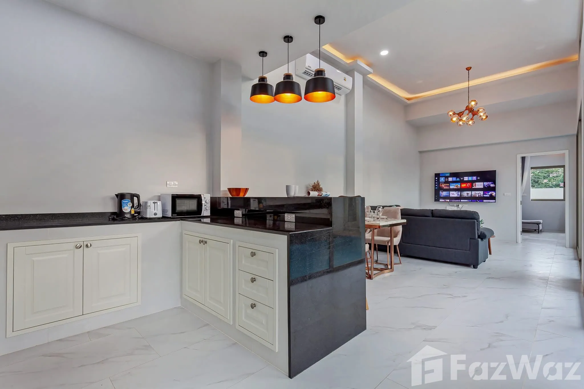 เป็นยูนิตที่ขายพร้อมกับเฟอร์นิเจอร์ครบชุด ที่เรียกได้ว่าเพียงแค่ยกกระเป๋าเสื้อผ้าเข้าไปก็สามารถอยู่อาศัยได้ทันที โดยมักจะมีเฟอร์นิเจอร์ตั้งแต่โซฟา ชั้นวางทีวี ในห้องรับแขก หรืออุปกรณ์เครื่องครัวทั้งหมด รวมไปถึงโต๊ะอาหาร ไล่เรียงไปยังเตียงนอนและตู้เสื้อผ้า ในห้องนอน (รายละเอียดปลีกย่อยอื่นๆ ขึ้นอยู่กับแต่ละยูนิต)