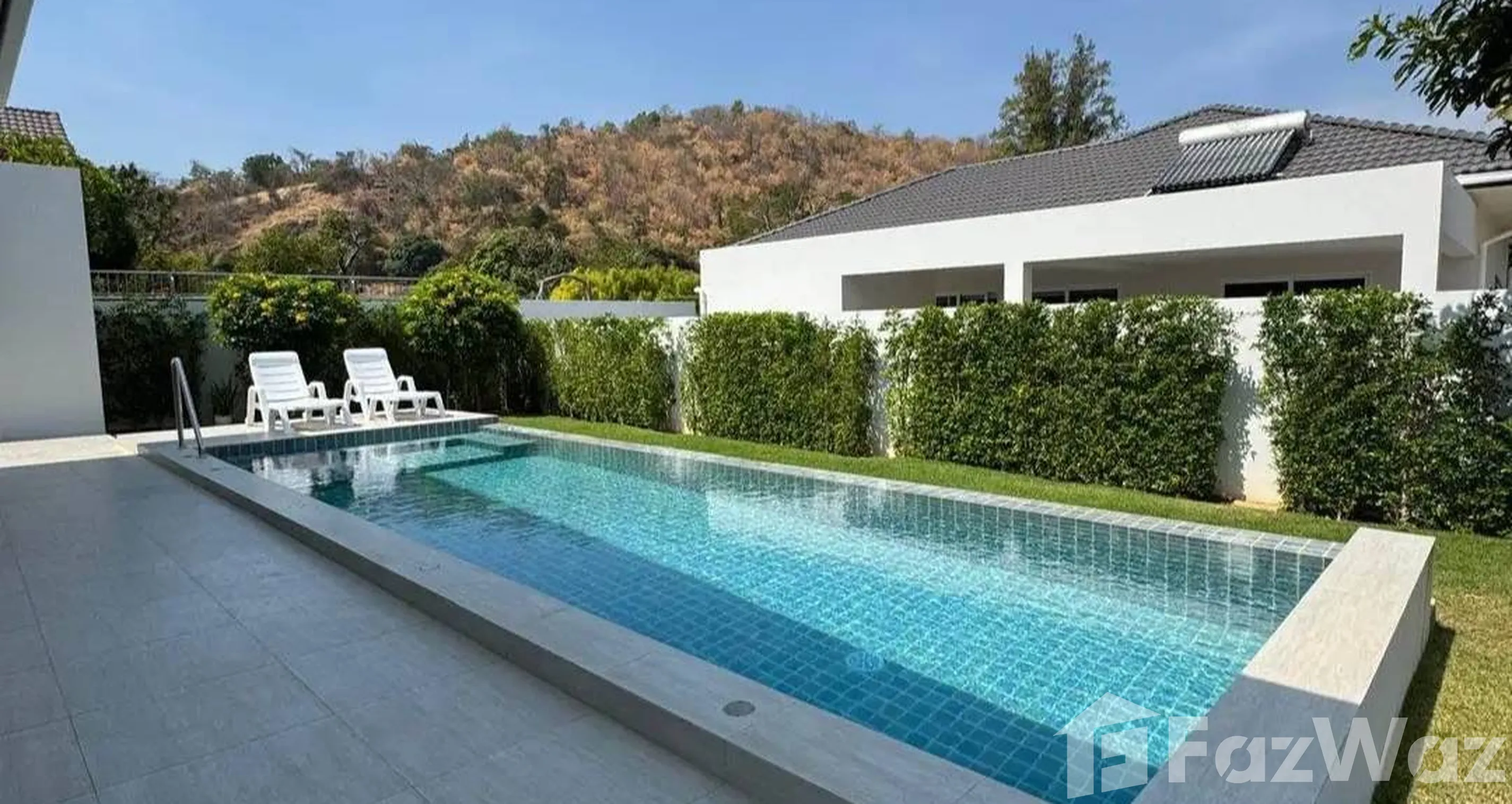 สระว่ายน้ำส่วนตัวสระว่ายน้ำส่วนตัว เข้าถึงสระส่วนกลางได้เข้าถึงสระส่วนกลางได้ สวนส่วนตัวสวนส่วนตัว ชานบ้านชานบ้าน ที่จอดรถที่จอดรถ ครัวฝรั่งครบชุดครัวฝรั่งครบชุด เตาไมโครเวฟเตาไมโครเวฟ เตาอบเตาอบ ทีวีทีวี