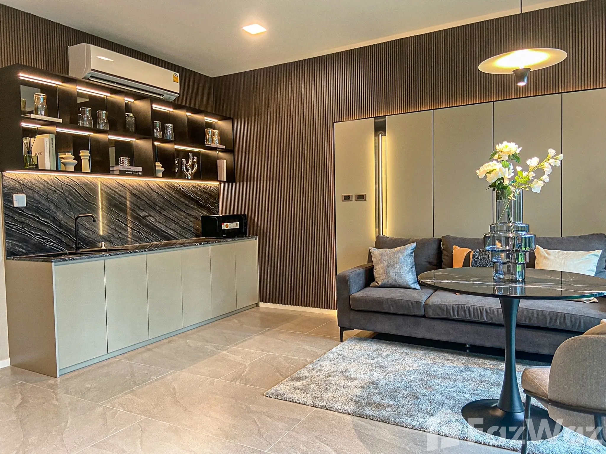 เป็นยูนิตที่ขายพร้อมกับเฟอร์นิเจอร์ครบชุด ที่เรียกได้ว่าเพียงแค่ยกกระเป๋าเสื้อผ้าเข้าไปก็สามารถอยู่อาศัยได้ทันที โดยมักจะมีเฟอร์นิเจอร์ตั้งแต่โซฟา ชั้นวางทีวี ในห้องรับแขก หรืออุปกรณ์เครื่องครัวทั้งหมด รวมไปถึงโต๊ะอาหาร ไล่เรียงไปยังเตียงนอนและตู้เสื้อผ้า ในห้องนอน (รายละเอียดปลีกย่อยอื่นๆ ขึ้นอยู่กับแต่ละยูนิต)