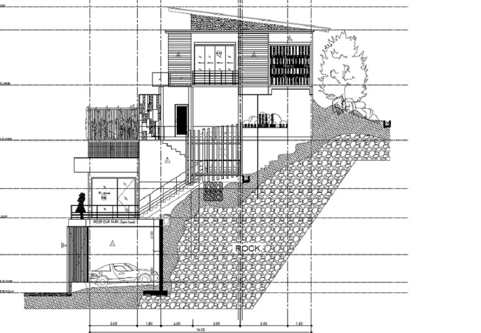 เป็นการรวมขนาดของพื้นที่ก่อสร้างภายนอก เช่น สระว่ายน้ำ, ชานบ้าน, ที่จอดรถ และ ศาลา แต่จะไม่รวมพื้นที่สวนเข้าไปด้วย