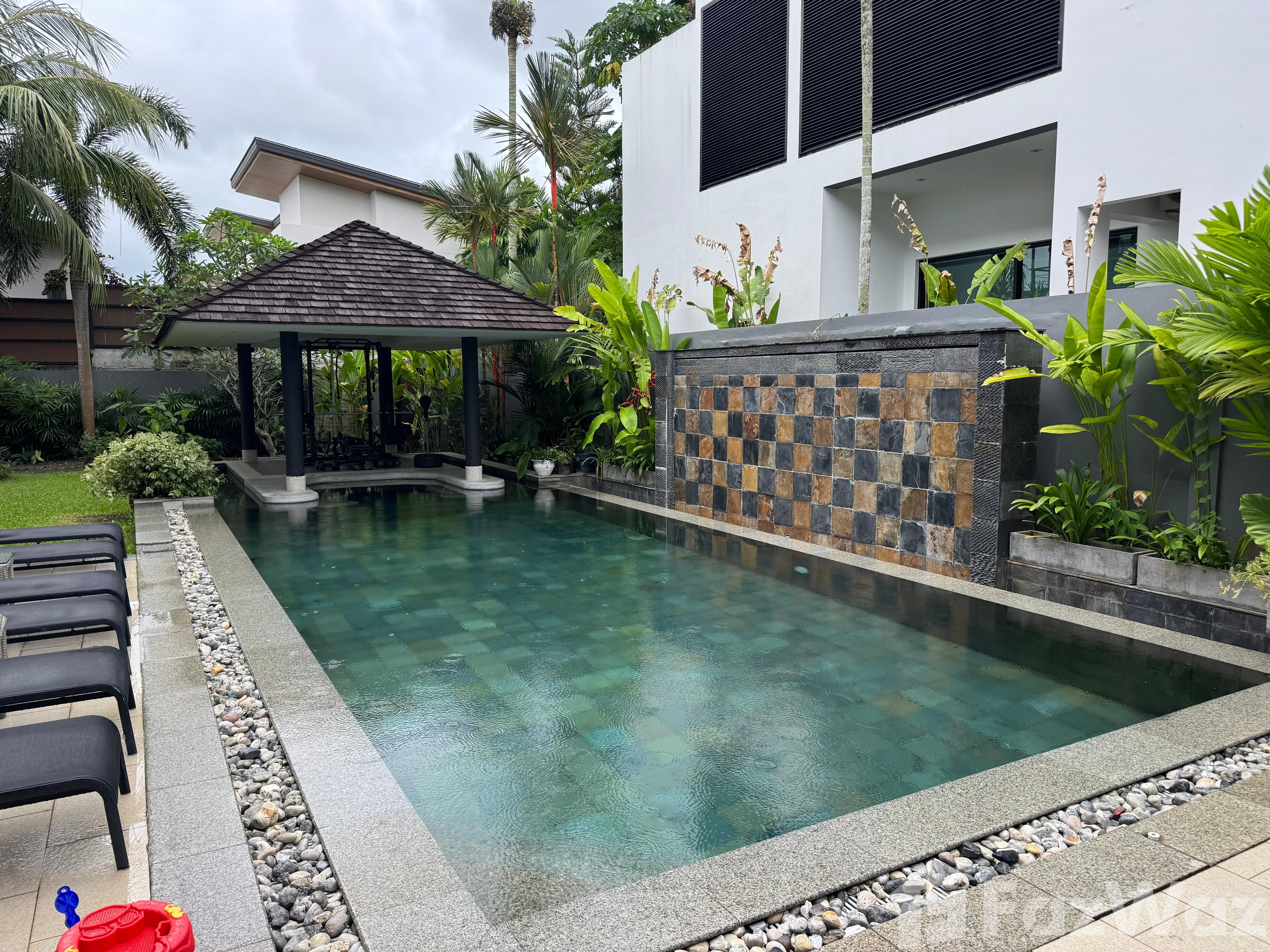 สระว่ายน้ำส่วนตัวสระว่ายน้ำส่วนตัว ชานบ้านชานบ้าน ที่จอดรถที่จอดรถ ระเบียงระเบียง ฟรี Wifiฟรี Wifi เครื่องซักผ้าเครื่องซักผ้า เตาไมโครเวฟเตาไมโครเวฟ เตาอบเตาอบ ทีวีทีวี คนดูแลสระว่ายน้ำคนดูแลสระว่ายน้ำ