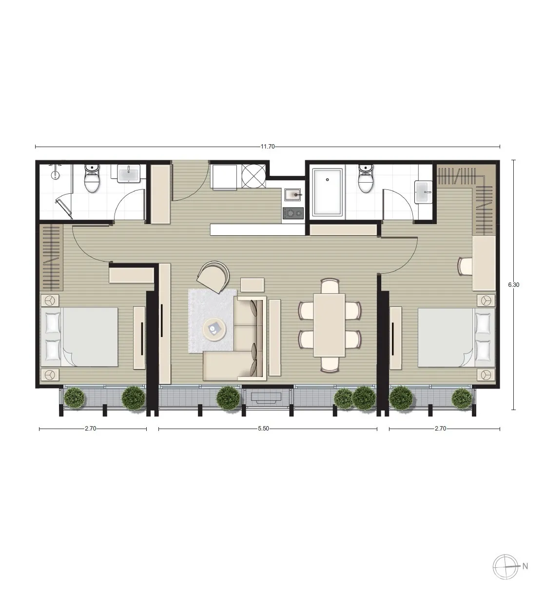 เป็นยูนิตที่ขายพร้อมกับเฟอร์นิเจอร์ครบชุด ที่เรียกได้ว่าเพียงแค่ยกกระเป๋าเสื้อผ้าเข้าไปก็สามารถอยู่อาศัยได้ทันที โดยมักจะมีเฟอร์นิเจอร์ตั้งแต่โซฟา ชั้นวางทีวี ในห้องรับแขก หรืออุปกรณ์เครื่องครัวทั้งหมด รวมไปถึงโต๊ะอาหาร ไล่เรียงไปยังเตียงนอนและตู้เสื้อผ้า ในห้องนอน (รายละเอียดปลีกย่อยอื่นๆ ขึ้นอยู่กับแต่ละยูนิต)