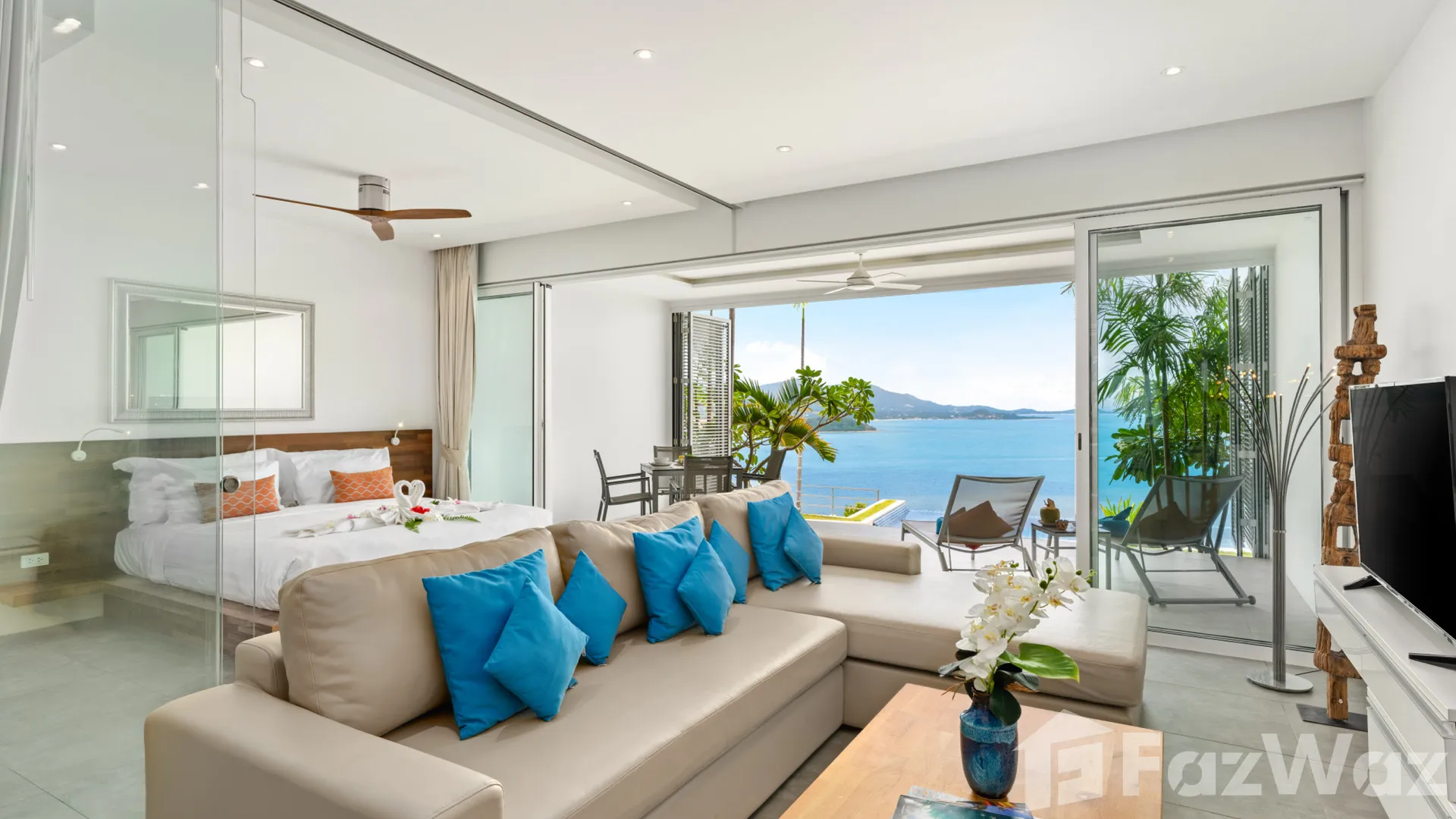 อพาร์ทเมนท์ชั้นหนึ่งทันสมัยพร้อมสระว่ายน้ำอินฟินิตี้โดยตรง