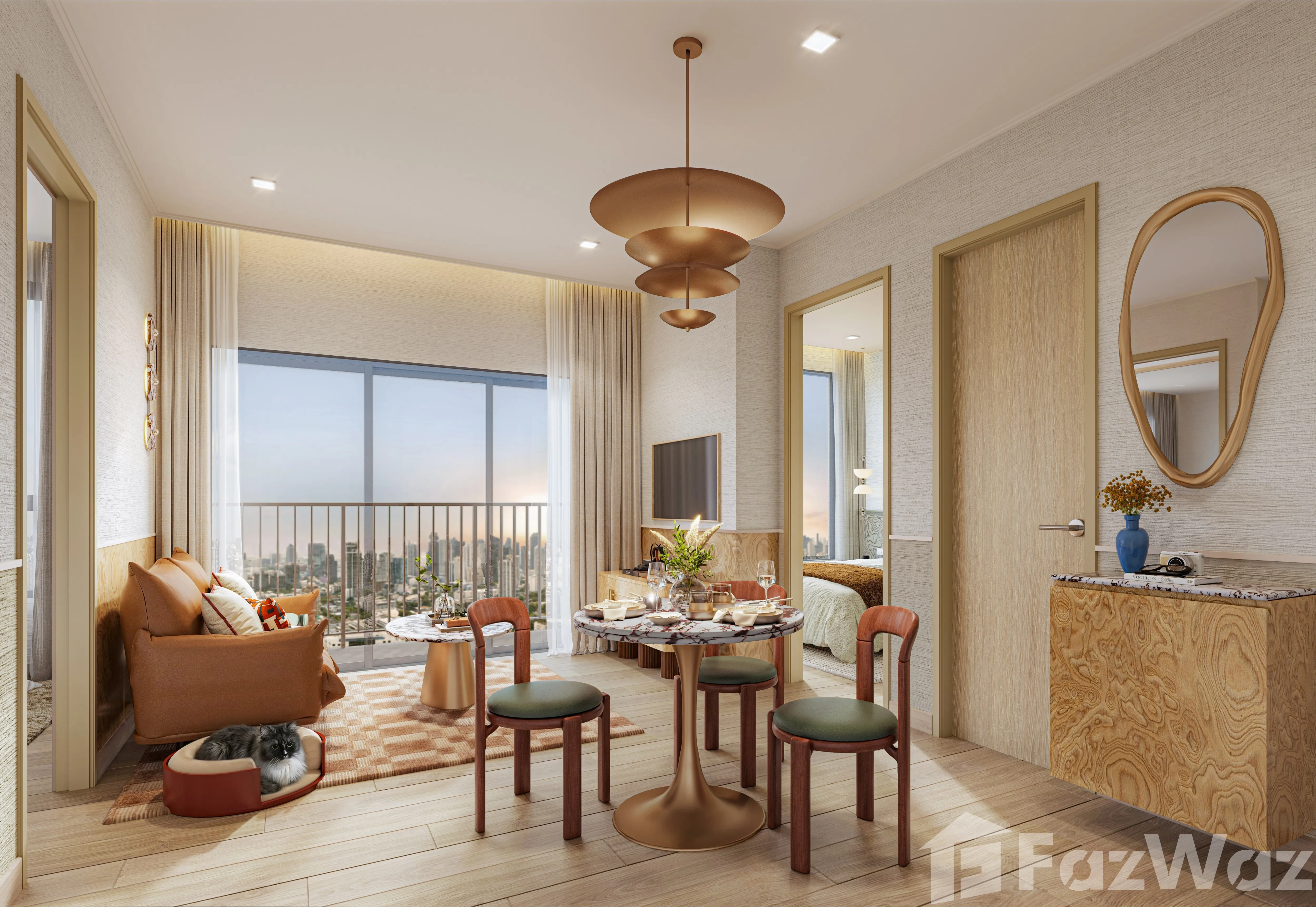 การออกแบบผสมผสานสไตล์ Mid-Century Modern และ Modern Contemporary ได้อย่างลงตัว โดดเด่นด้วยเส้นสายโค้งมน การใช้สีสันอย่างมีเอกลักษณ์ และการจัดวางพื้นที่ที่สร้างบรรยากาศมีชีวิตชีวา
