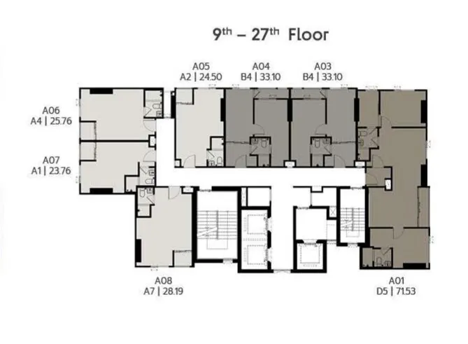 สตูดิโอขนาดตั้งแต่ 23 ถึง 28 ตร.ม