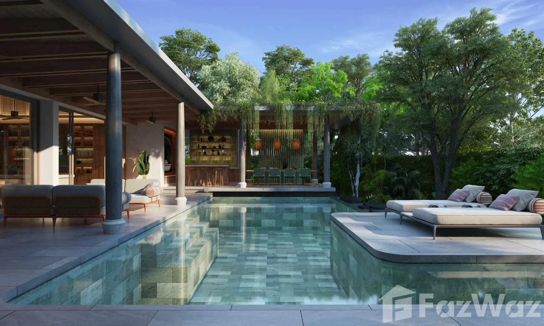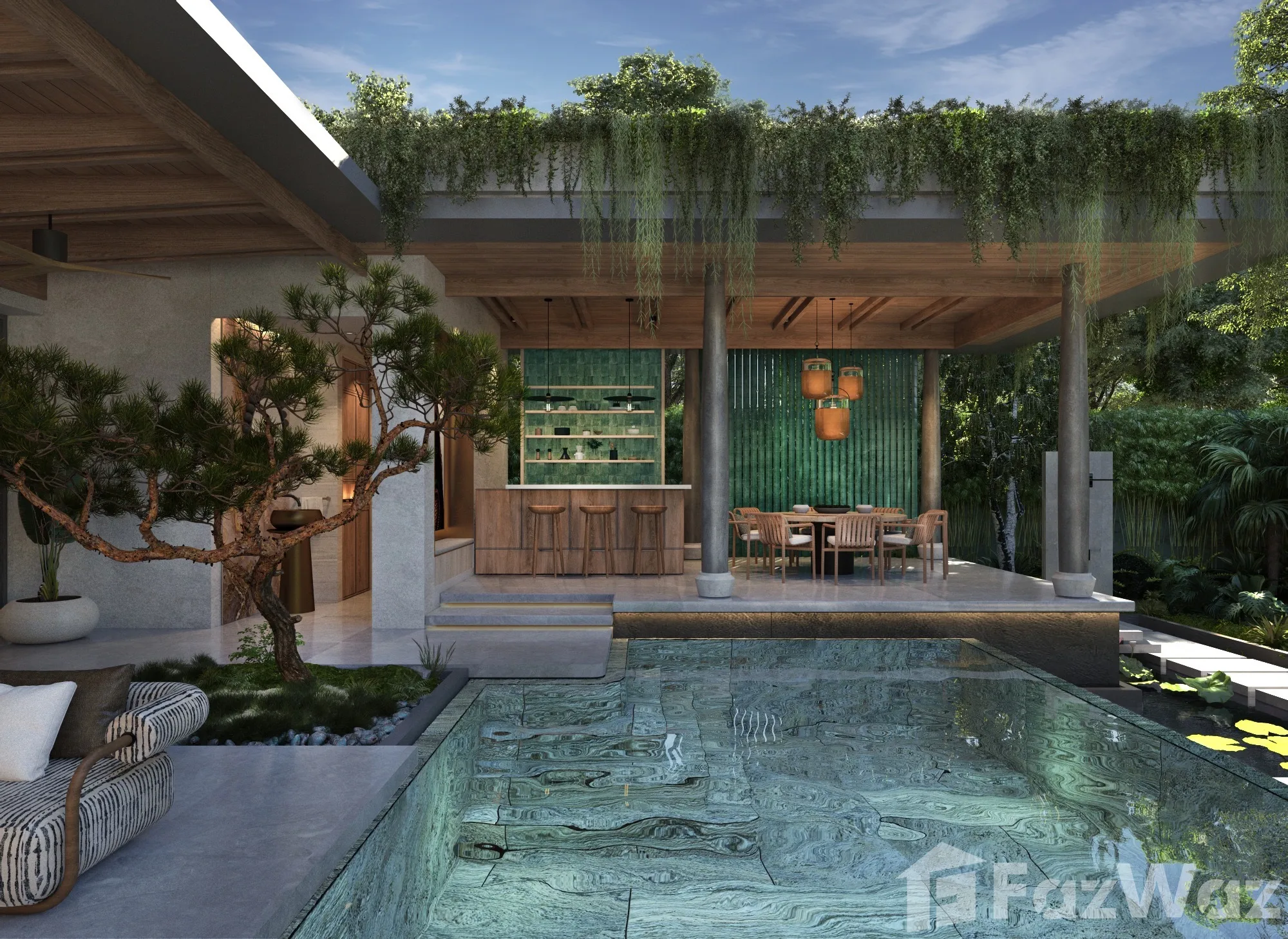 พื้นที่กลางแจ้งได้รับการออกแบบเพื่อความสมดุลและความสงบ สระว่ายน้ำและลานพักผ่อนใช้หินธรรมชาติและงานภูมิทัศน์ที่ร่มรื่น เหมาะทั้งสำหรับการพักผ่อนส่วนตัวและการต้อนรับแขกในบรรยากาศหรูหรา