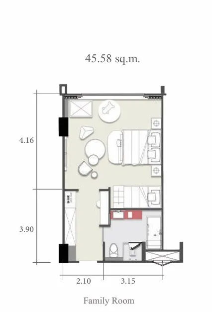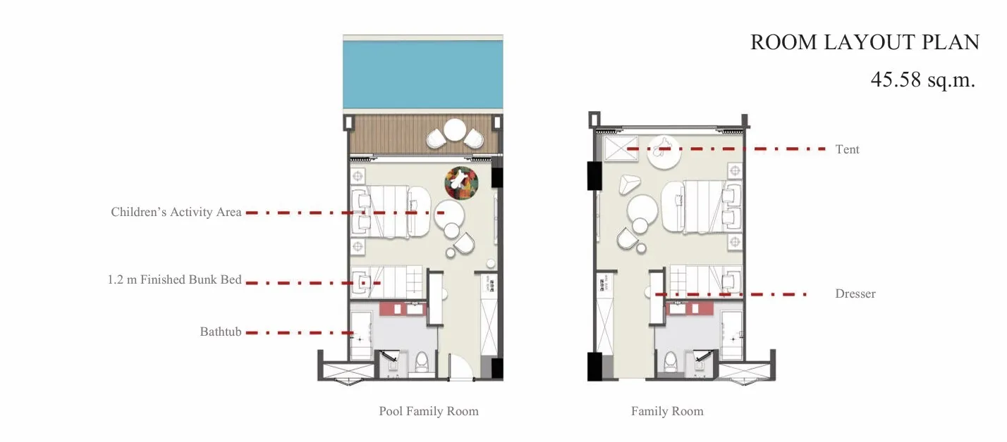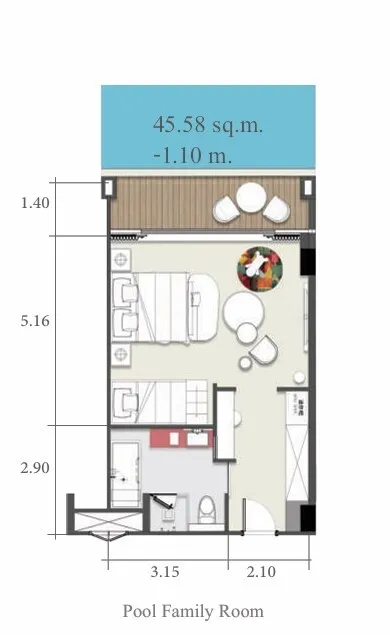 โครงการมีห้องพักหลากหลายรูปแบบ ตั้งแต่ ห้อง Standard, King Room, ห้อง Pool Access ไปจนถึง Family Suite ขนาดใหญ่ รองรับทั้งการพักอาศัยระยะยาว บ้านพักตากอากาศ และการปล่อยเช่าเพื่อการลงทุน