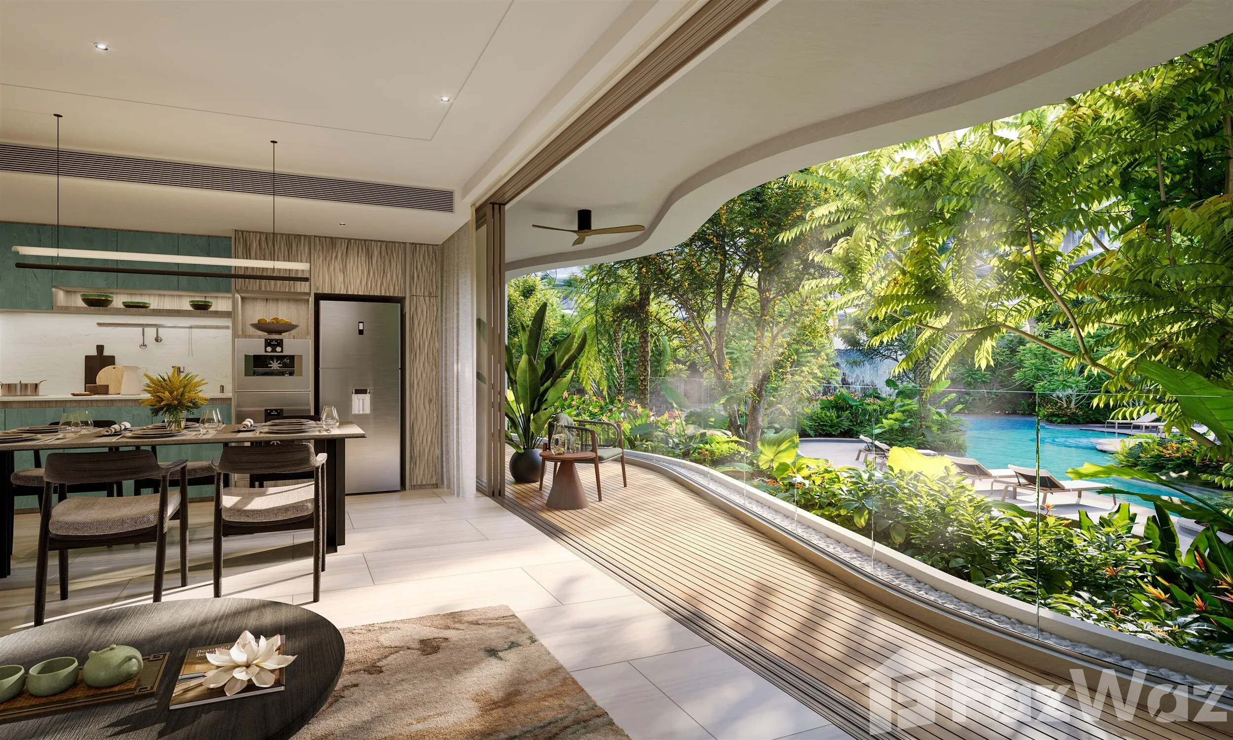 ภายในอพาร์ทเมนท์มีบรรยากาศสบาย ๆ โดดเด่นด้วยพื้นผิวที่หลากหลายและสีเอิร์ธโทนที่เน้นด้วยใบไม้เขียวขจีที่ผสานเข้ากับการตกแต่งภายในได้อย่างลงตัว จากระเบียงกลางแจ้ง ผู้พักอาศัยจะได้รับชมทิวทัศน์อันน่าทึ่งที่ผสมผสานกับทิวทัศน์ท้องทะเลที่งดงามได้อย่างลงตัว ด้วยการผสมผสานระหว่างองค์ประกอบออร์แกนิกตามธรรมชาติและความเรียบง่ายร่วมสมัย แกร์ยา เรสซิเด้นซ์ เป็นตัวอย่างที่ชัดเจนของการใช้ชีวิตเพื่อสุขภาพริมชายหาด